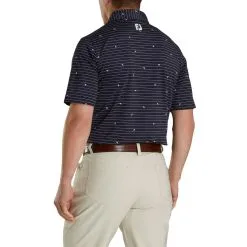 FootJoy Athletic Fit Lisle Stripe Self Collar Navy Stripe Mens Golf Polo