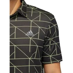 Adidas Golf Adidas Jacquard Lines Black-Lime Mens Golf Polo