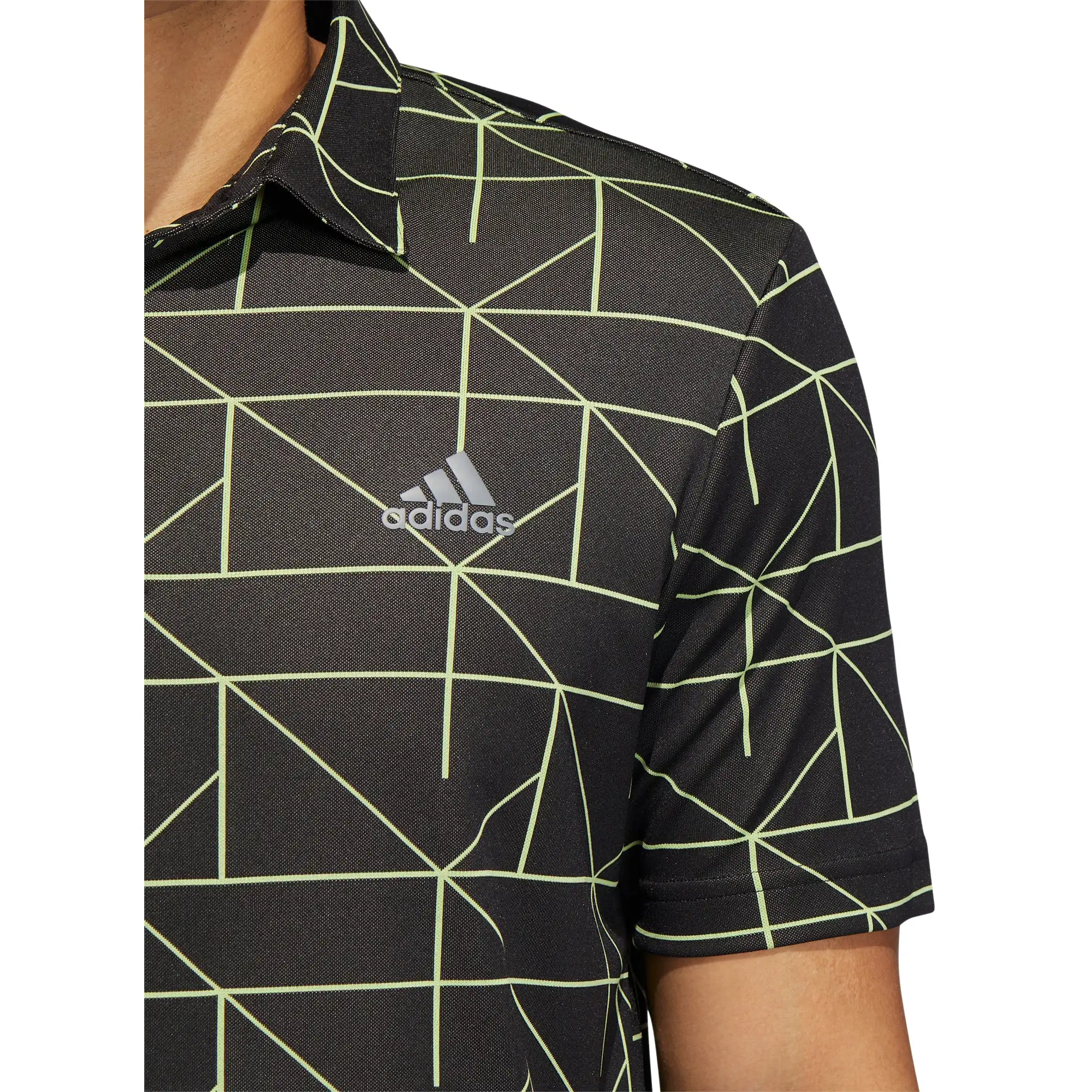 Add modern styling to your golf wardrobe with the Adidas Jacquard Lines Golf Polo. This polo features a jacquard build which provides comfort throughout the round and the long back hem ensures it will stay tucked in even during the golf swing. The allover graphic print provides a modern look that will have you looking good and impressing others both on and off the golf course. The Jacquard Lines is built with 100 percent of recycled materials that helps eliminate plastic waste.