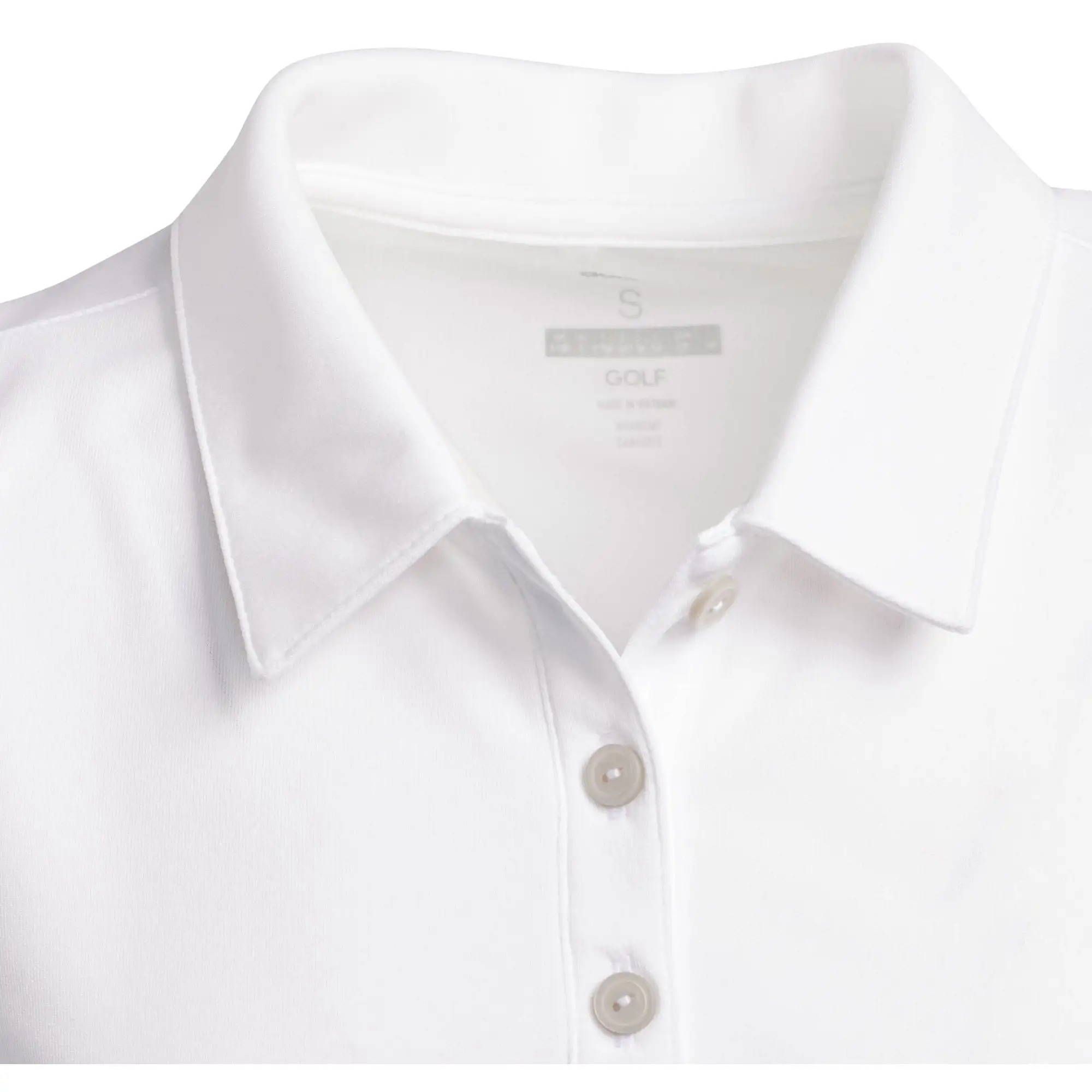 Get breathable comfort both on and off the golf course with the Adidas Performance Sleeveless Golf Polo. This polo is built with a comfortable, moisture wicking fabric that pulls sweat from the body to keep you dry and comfortable during the entire round. There is a built-in UPF 50+ UV protection to keep you protected from the harmful UV rays of the sun and the Regular fit with straight silhouette provides a flattering feminine fit. A metallic Adidas Badge of Sport logo above the right hem adds a subtle touch of style.