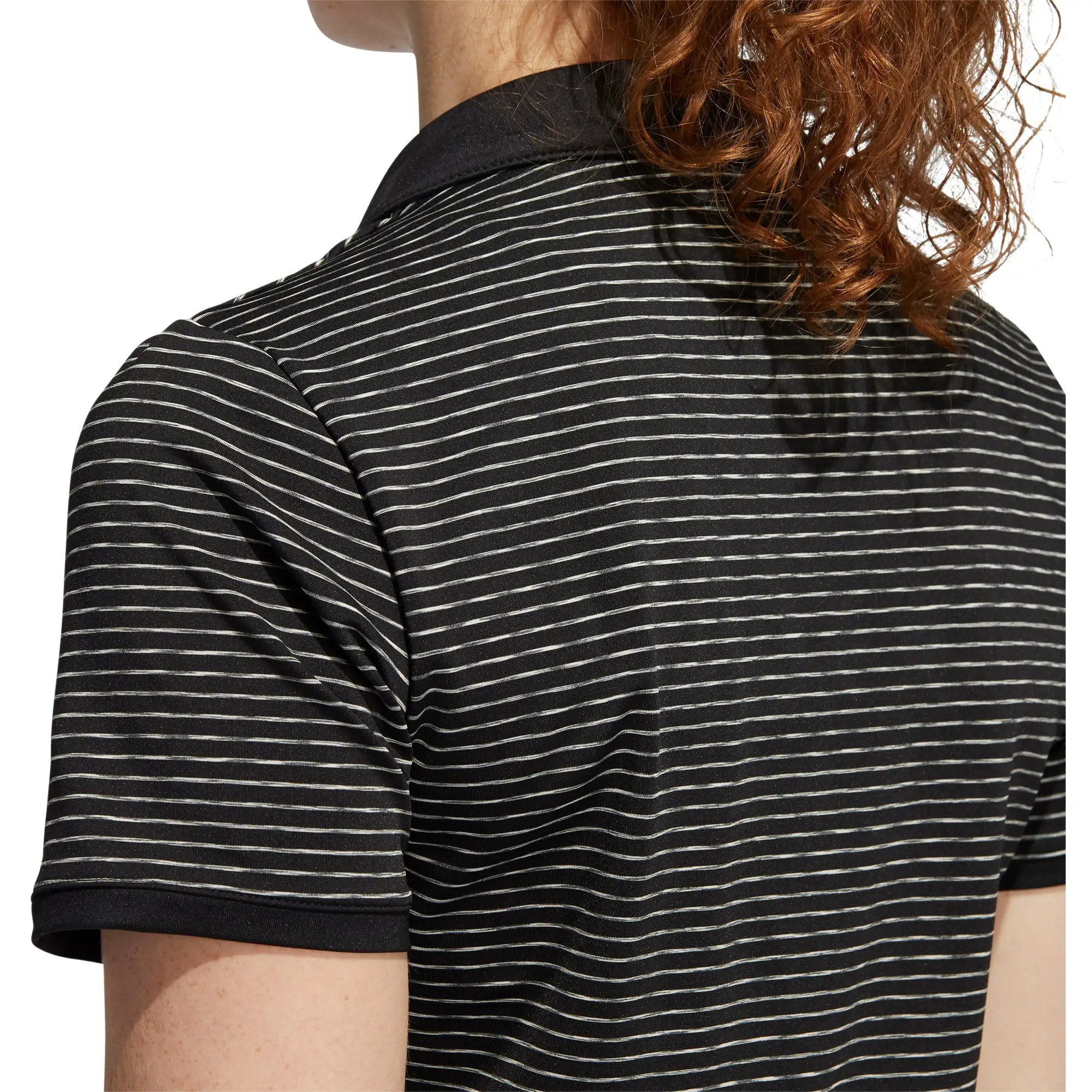 Get maximum comfort for the golf course with the Adidas Ultimate365 Space-Dyed Striped Golf Polo. This short sleeve polo was built to allow golfers to swing with confidence and comfort as its built with a four-way stretch fabric. The fabric is also moisture wicking to keep you dry and comfortable during your round and a UV 50+ factor keeps you protected from the harmful UV rays of the sun. The open V-neck polo collar adds a subtle touch of style that will have you looking good.