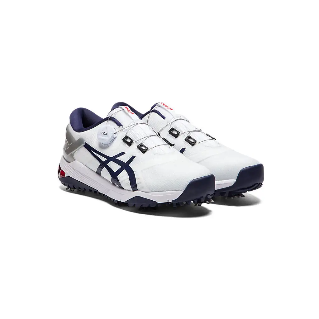 These Asics Gel Course Dup Boa Mens Golf Shoes makes lacing up for the links a cinch. Offering a precise fit that caters to the natural shape of your foot, this shoe is complemented with a low-profile design that provides improved traction and stability on the fairway and putting green. Equipped with a BOA lacing system to offer lightweight support and padding while promoting a customized fit, this shoe is complemented with an external heel counter that reinforces stability, so you can stay focused on your swing. The midsole is layered with FLYTEFOAM technology lightens the overall weight of the midsole, while the layer of GEL technology based cushioning in the heel helps create comfort throughout the variation of the course.