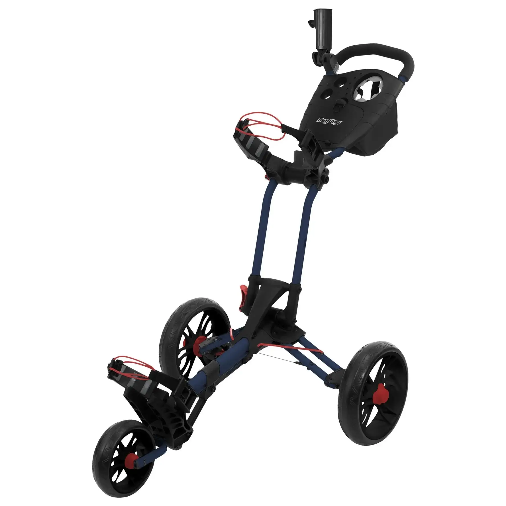 Transport your bag around the golf course with ease with the Bag Boy Spartan XL Push Cart. The Spartan XL features two oversize 13 inch rear wheels and a front wheel that will roll over the course with ease. There is an extra-deep scorecard console with built-in beverage holder and accessory bag under the scorecard console that is useful for storing tees or a cell.