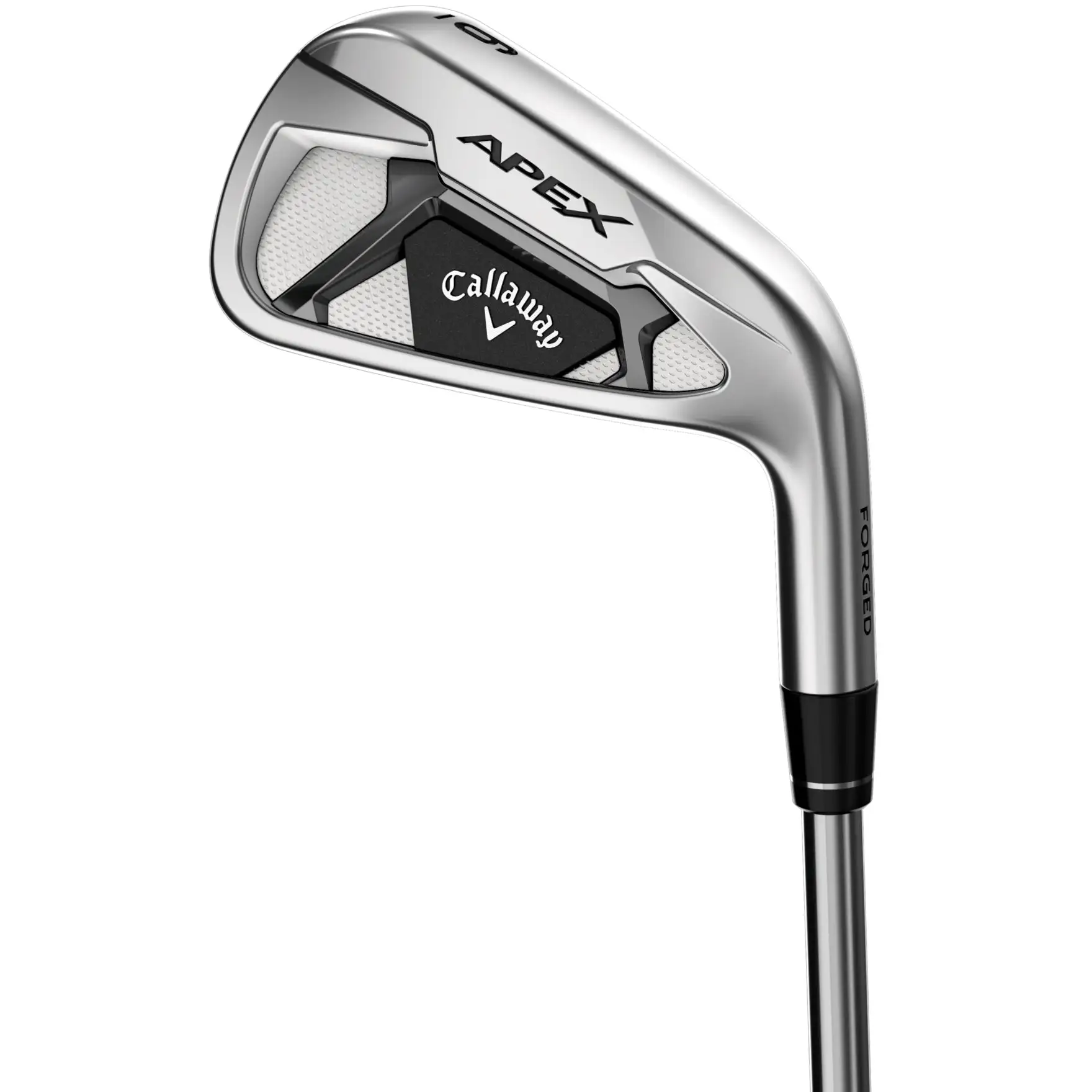 Get an extraordinary level of forged performance and craftsmanship with the Callaway Apex 21 Irons. They are the first forged iron that is built with Artificial Intelligence that provides golfers with faster ball speeds and improved consistency. The Tungsten energy core offers increased forgiveness and there is enhanced shaping for better turf interaction. The body of these irons is 100 percent forged iron and patented urethane microspheres that provide exceptional sound and feel at impact. These irons gives golfers superior performance with amazing feel on every swing.