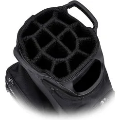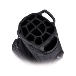 This Callaway Org 14 cart bag leads the industry for easy organization with 11 pockets and a 14-way top with full length dividers. Callaway upped the ante by redesigning the 14-way top to sit parallel to the ground, allowing club grips to sit flush in the bag. A TPE lined putter well keeps putter shafts from scratching. All pockets are forward facing as to be easily accessible on the cart and have a purpose in mind. It features a magnetic molded range finder pocket, two large insulated cooler pockets, and 2 large volume apparel pockets. All of these great features are wrapped with a durable woven fabric to give the bag a style of its own.