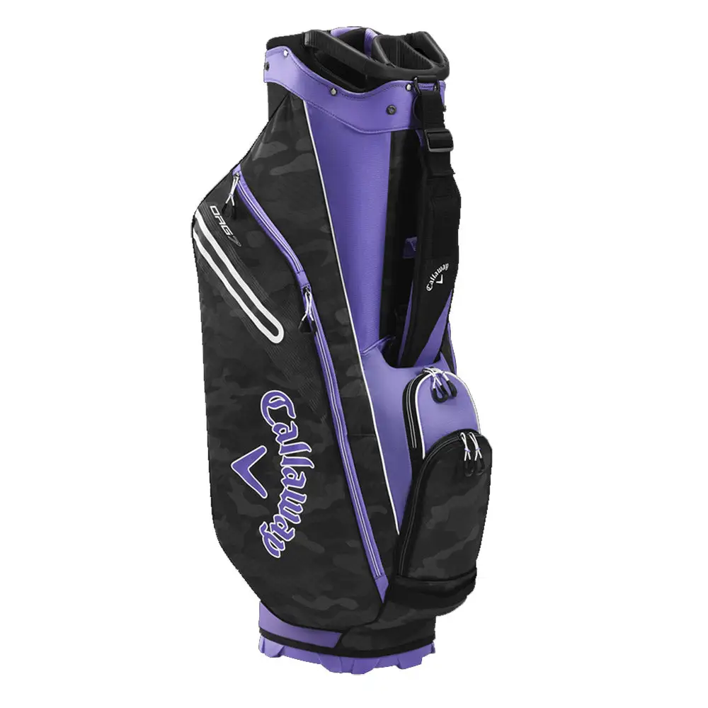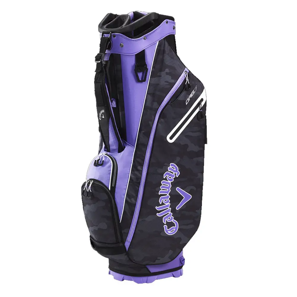 Get a light cart bag that does not sacrifice on storage space with the Callaway Org 7 Golf Cart Bag. This bag features a 7-way top with full length dividers to keep your clubs organized to your specifications and seven pockets provide ample storage for balls, extra clothing, tees and anything else you need for a round of golf. There is a front strap and grab handle for easy carrying to and from the car and cart.