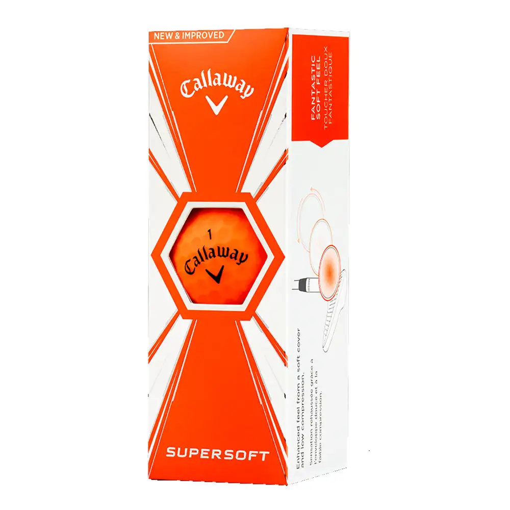 The Callaway Supersoft Golf Balls are a long, straight distance ball that’s incredibly soft, with an ultra-low compression core for fast ball speeds, and super low spin and low drag. Made with an advanced core promotes low spin for longer, straighter flight on full shots. New softer Trionomer cover formulation with a low compression for better feel and greater shot-stopping spin.
