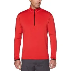 Conquer the elements during your round with the Callaway Swing Tech Outlast Golf 1/4 Zip. The Outlast has been designed with the innovative Outlast technology that will keep you cool in warm weather and warm when the weather cools off. This material absorbs, stores and releases heat for optimal thermal comfort and the stretch fabric is enhanced with Swing Tech through the shoulders which lets golfers maximize their range of motion with every swing.