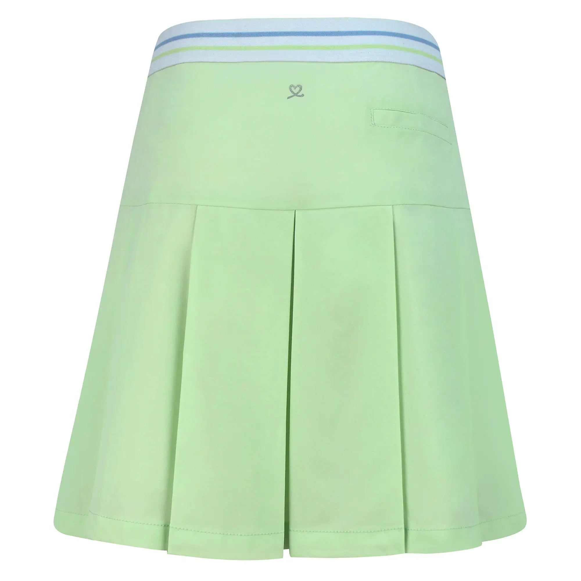 Add style to your golf wardrobe with the Daily Sports Angela Golf Skort. The Angela is built with a quick drying, lightweight material that features a colorful back trim and pleats for a feminine look. There are inner shorts that provide additional coverage during swings and its also breathable with wind and water resistant capabilities that keep you dry and comfortable during your round.