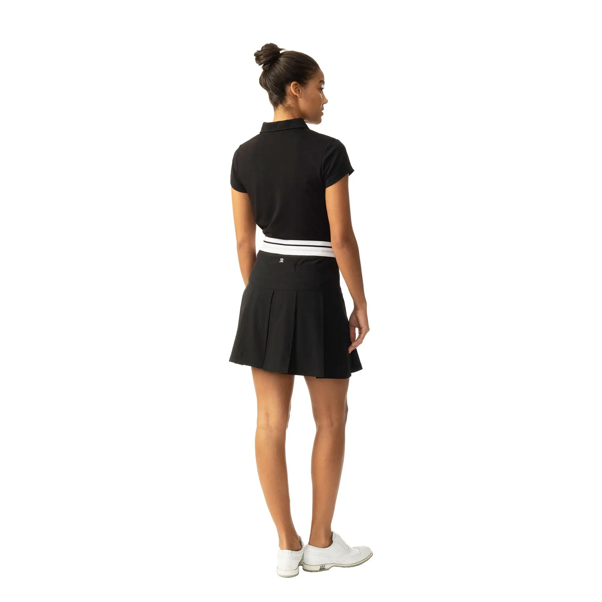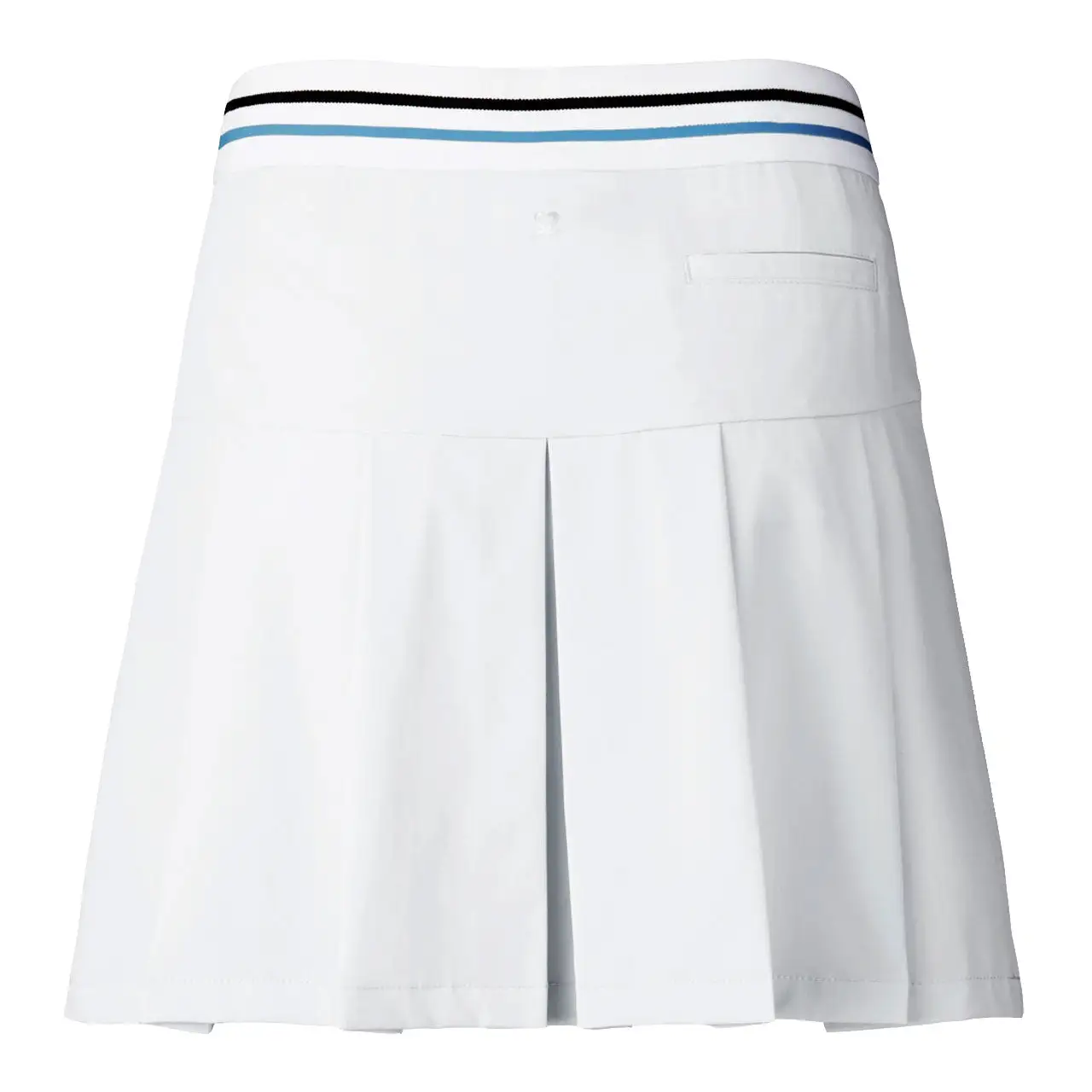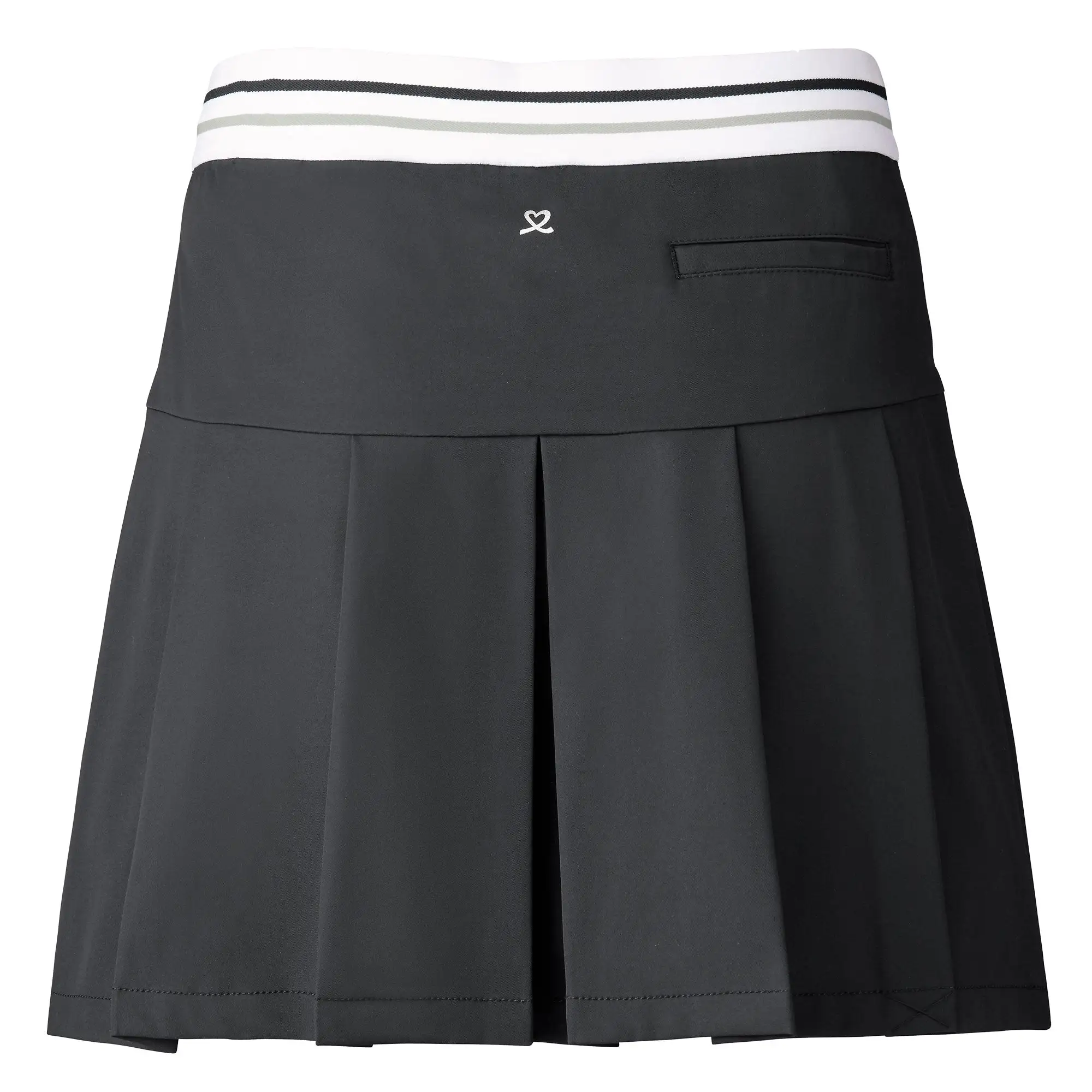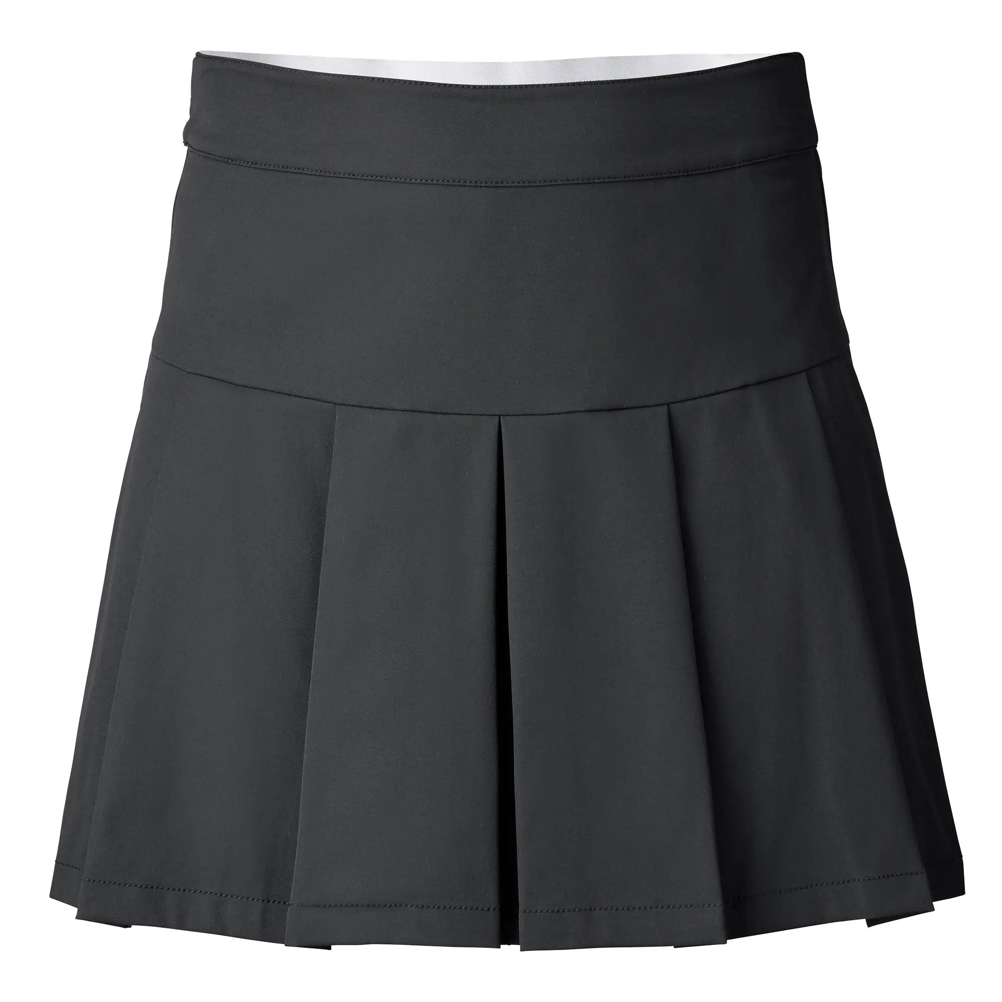 The Daily Sports Angela 18 inch Womens Golf Skort has that beautiful, classic look you will love when heading out for a round of golf. Wind and water-resistant properties allow you to take this skort on any vacation or weekend event. A single back pocket provides a place for a tee or scorecard and the 18 inch length boasts a modest and sophisticated look.