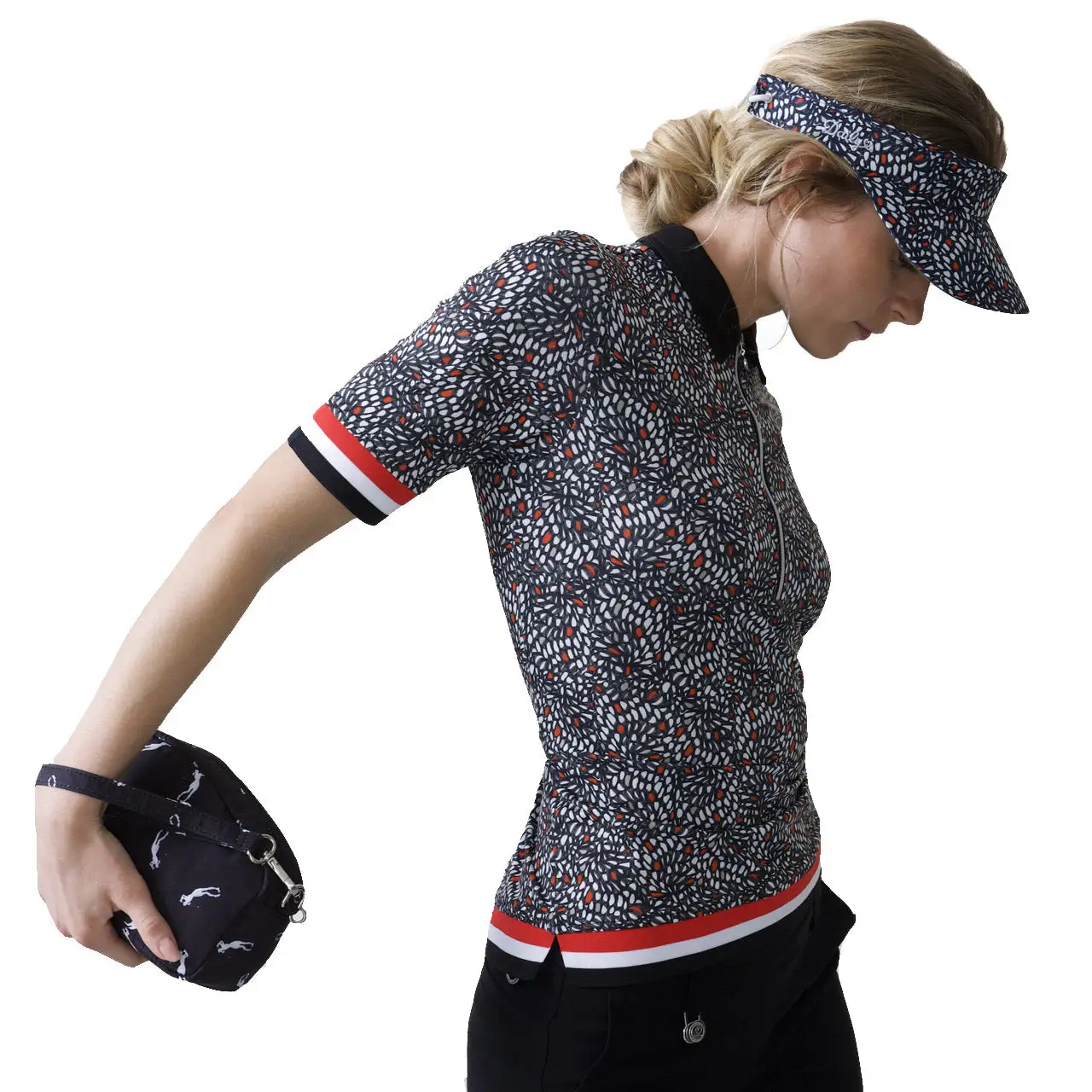 The Daily Sports Imola Half Sleeve Womens Golf Polo was made to guide you through your greatest game. A bold, all-over print adorns this lightweight, blended top. Quick-drying with a technical stretch, the Imola Short Sleeve Polo was created to keep you dry and comfortable, and the half zip can be worn down to cool off or up for a more modest approach to your game.
