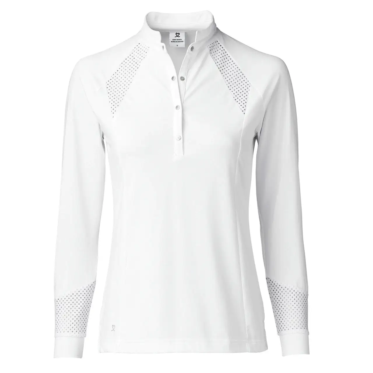 Look super sporty on the golf course with the Daily Sports Linnea Golf Polo. This long sleeve polo is built with a breathable, moisture wicking quick dry material that will keep you dry and comfortable during your round. This high tech breathable material also has excellent ventilation to keep you cool and perforated inserts add to the cooling factor.