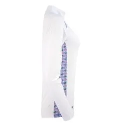 The Daily Sports Sue Long Sleeve Golf Polo will have you looking and feeling your best out on the course. Perfect to wear with shorts, skorts, or pants! It features a regular fit, straight hem, mock collar, zip placket, technical stretch, and argyle mesh print trim on the shoulders, placket and sleeves. This polo will feel dry, cool, and comfortable while wearing.