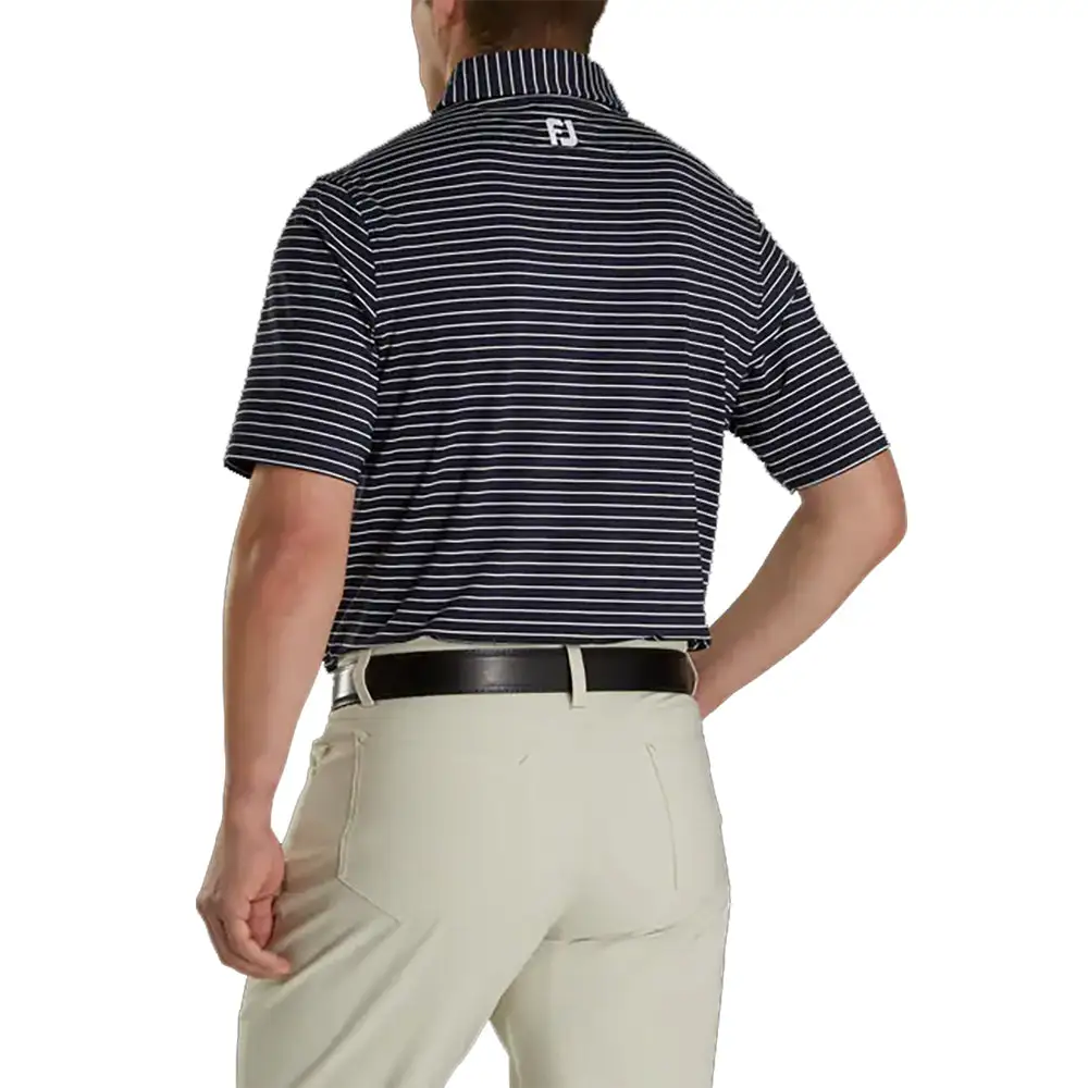 Take your golf style to the next level with the FootJoy Athletic Fit Classic Stripe Golf Polo. The Classic Stripe polo is built with the FootJoy Exclusive ProDry fabrication that will quickly wick away moisture to keep you dry and comfortable throughout the round and the Athletic Fit has shorter sleeves and a smaller chest for a fit, slimmer look. There is an anti-microbial technology that prevents odor from building up to keep you smelling fresh and the double stitched seams offer added durability and the extended back shirt tail make it easy to tuck in. The stripe pattern on this polo will have you looking good both on and off the golf course.