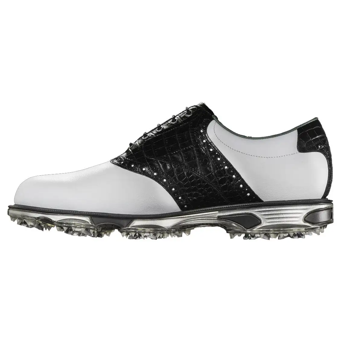 Get tons of comfort for your next round with the FootJoy DryJoys Tour Golf Shoes. These shoes feature an EVA midsole and a lightweight cushioned footbed that provide improved comfort and support and the Laser Plus Last delivers a better fit. The performance outsole features stability PODS with Optiflex technology that will maximize ground contact to provide superior traction on any terrain.