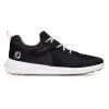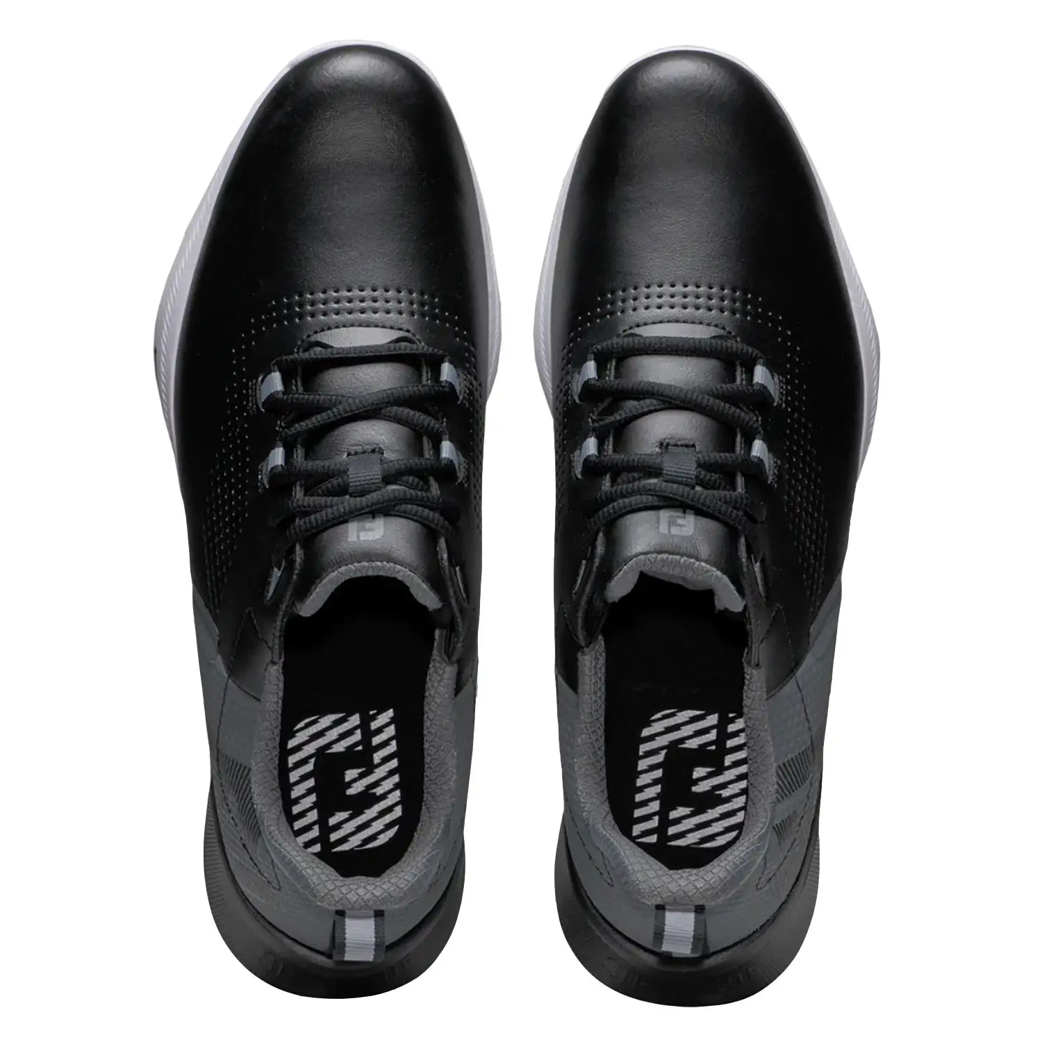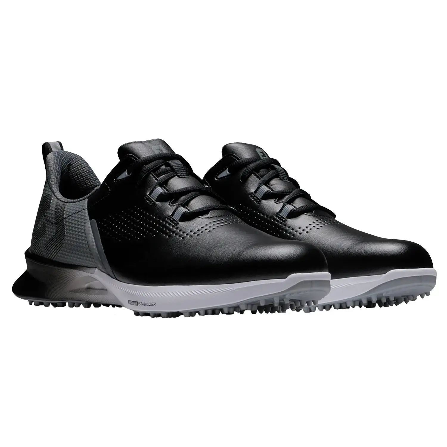 Bring the heat with the FootJoy Fuel Spikeless Golf Shoes. This athletic shoe gives golfers a sneaker inspired look that is built with a waterproof and synthetic upper for a comfortable fit with added durability. There is Stratolite foam for lightweight cushioning that will keep your foot comfortable for max walkability during every round. The Fuel shoe features a Power Stabilizer outsole that gives golfers with tour-proven traction in all-weather conditions and a Stability Bridge provides optimal support and control. Finally, the full rounded toe character with a toe spring and slightly narrow heel rounds out the athletic profile of this golf shoe.