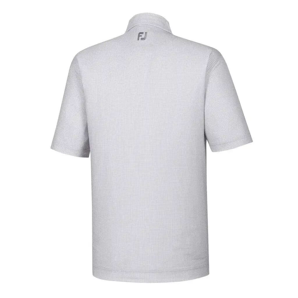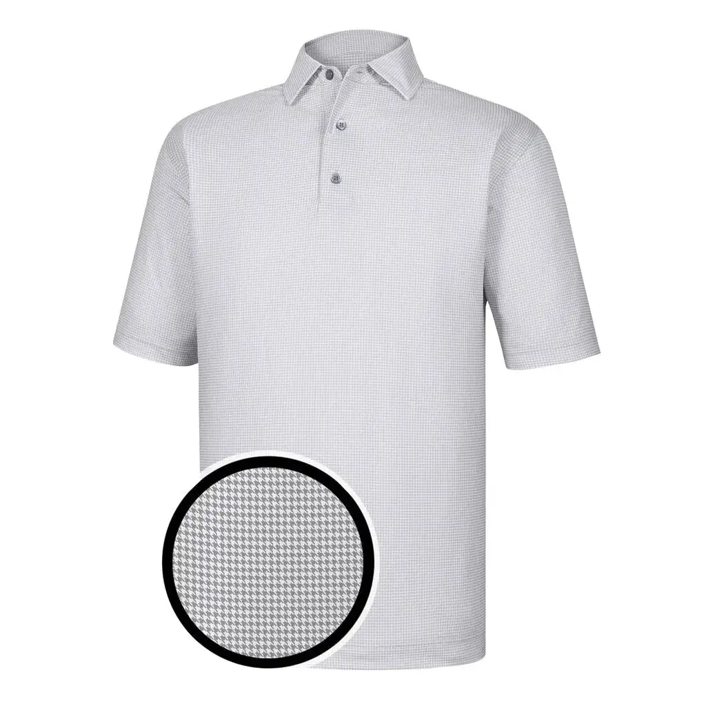 Add this FootJoy Heather Lisle Houndstooth Self Collar Men’s Golf Polo to your golf collection for durability and comfort. Made with double stitch seams and locked stitched hems for complete durability so you can play as hard as you want. With minimal wrinkle feel at ease machine washing this polo with its easy-care technology. Also made with an extended back for easy tuck in.