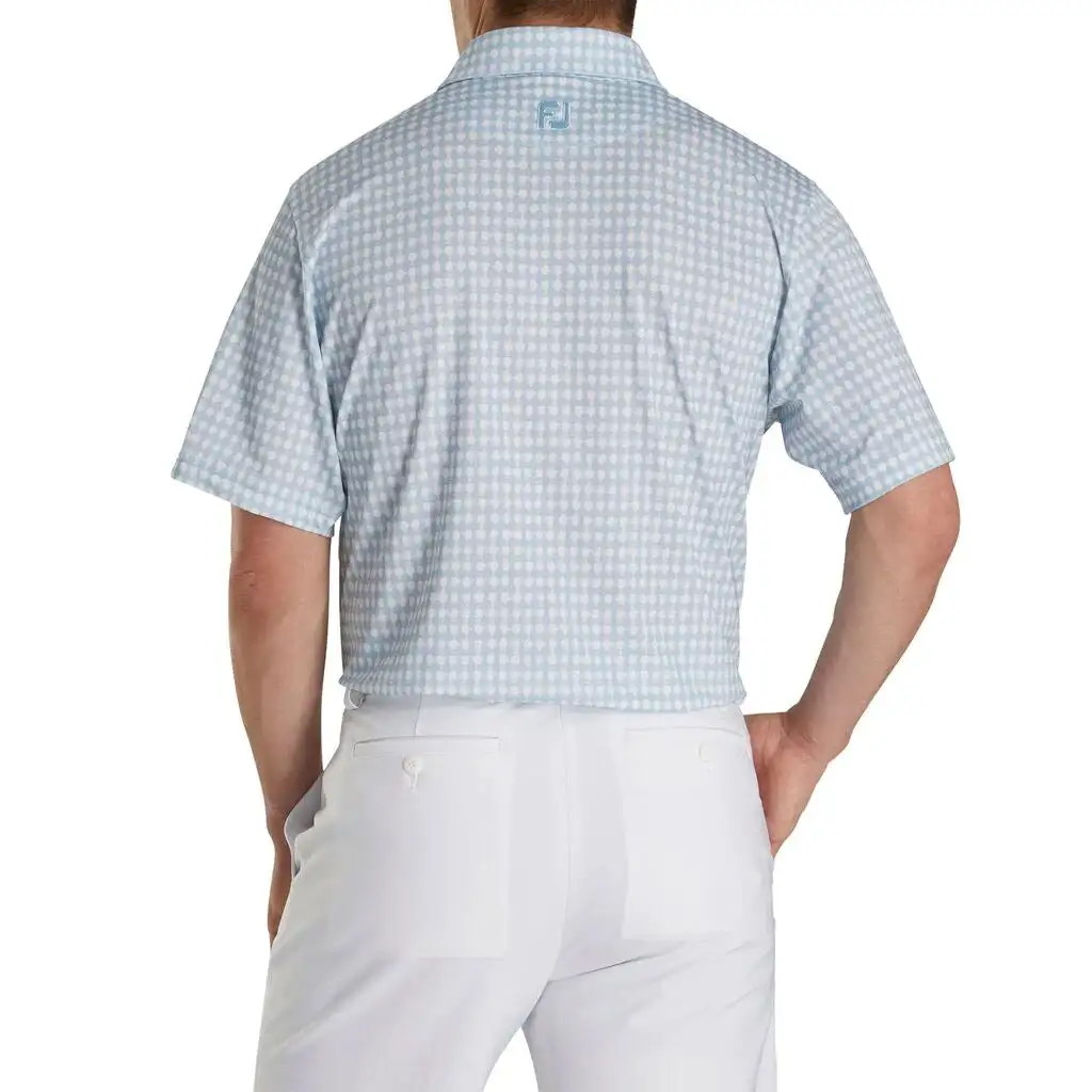 This FootJoy Lisle Gingham Fray Print Self Collar Men’s Polo is the perfect golf shirt for all golf outings. With double stitched seams for complete durability and locked stitched hem to reinforce giving it that tailored look. This shirt also has an extended back for easy tuck in.