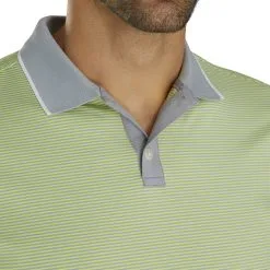 Get performance, comfort and style for your next round of golf with the FootJoy Lisle Ministripe Polo. This polo is built with the FootJoy Exclusive ProDry fabric that offers superior moisture control by wicking water away quickly while also providing a four-way stretch to keep you dry and comfortable throughout the round. There is an anti-microbial technology that prevents odor build up to keep you smelling fresh and the extended back shirt tail makes tucking it in a breeze. The contrasting color on the collar and placket and subtle striping will have you looking good during your round.
