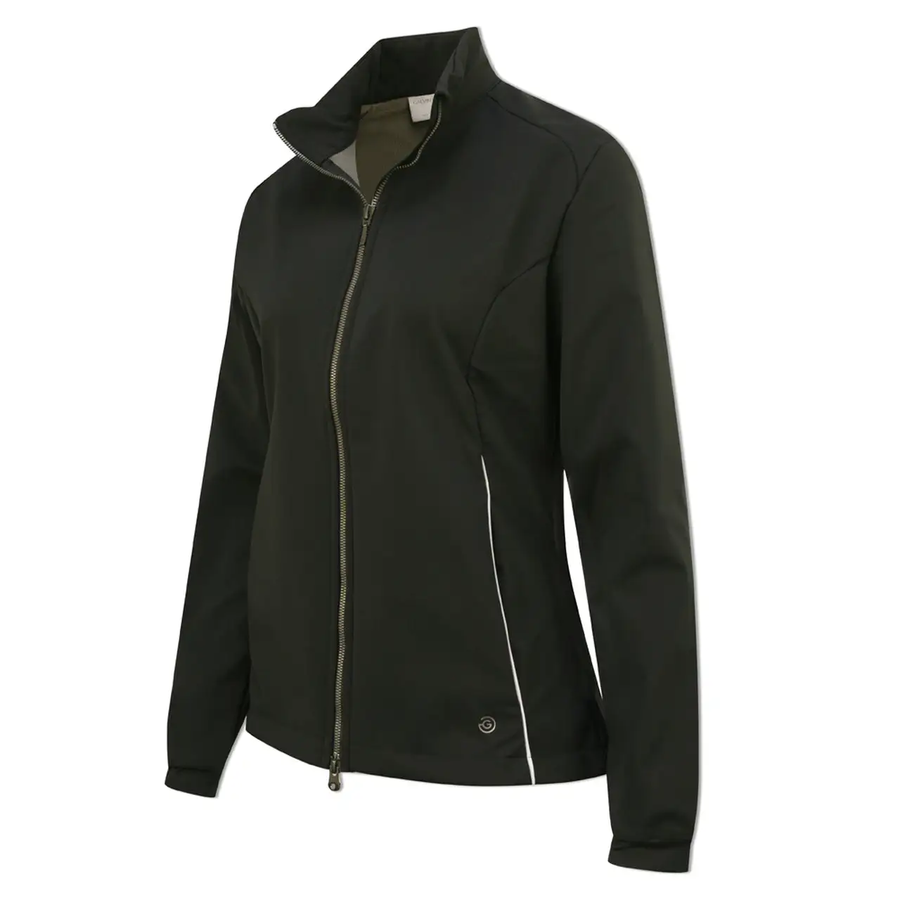 The Galvin Green Liv INTERFACE-1 Womens jacket offers contemporary styling to wear both on and off the course. The INTERFACE-1 shell layer provides exceptional versatility as a high-performance link between the mid layer and outer layer. This full-zip softshell jacket features GORE WINDSTOPPER fabric with water repellent finish, a warm microgrid lining, soft jersey cuffs, and drawstring adjusters inside the bottom hem for a better fit.