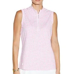 The GGBlue Tess Sleeveless Golf Polo is perfect for on and off the course. This polo has a mock neck, 9in metal zipper placket, and meets the 1.5in minimum collar length requirements. It is incorporated with UV protection, moisture wicking, and anti-microbial technologies to keep you cool and dry.