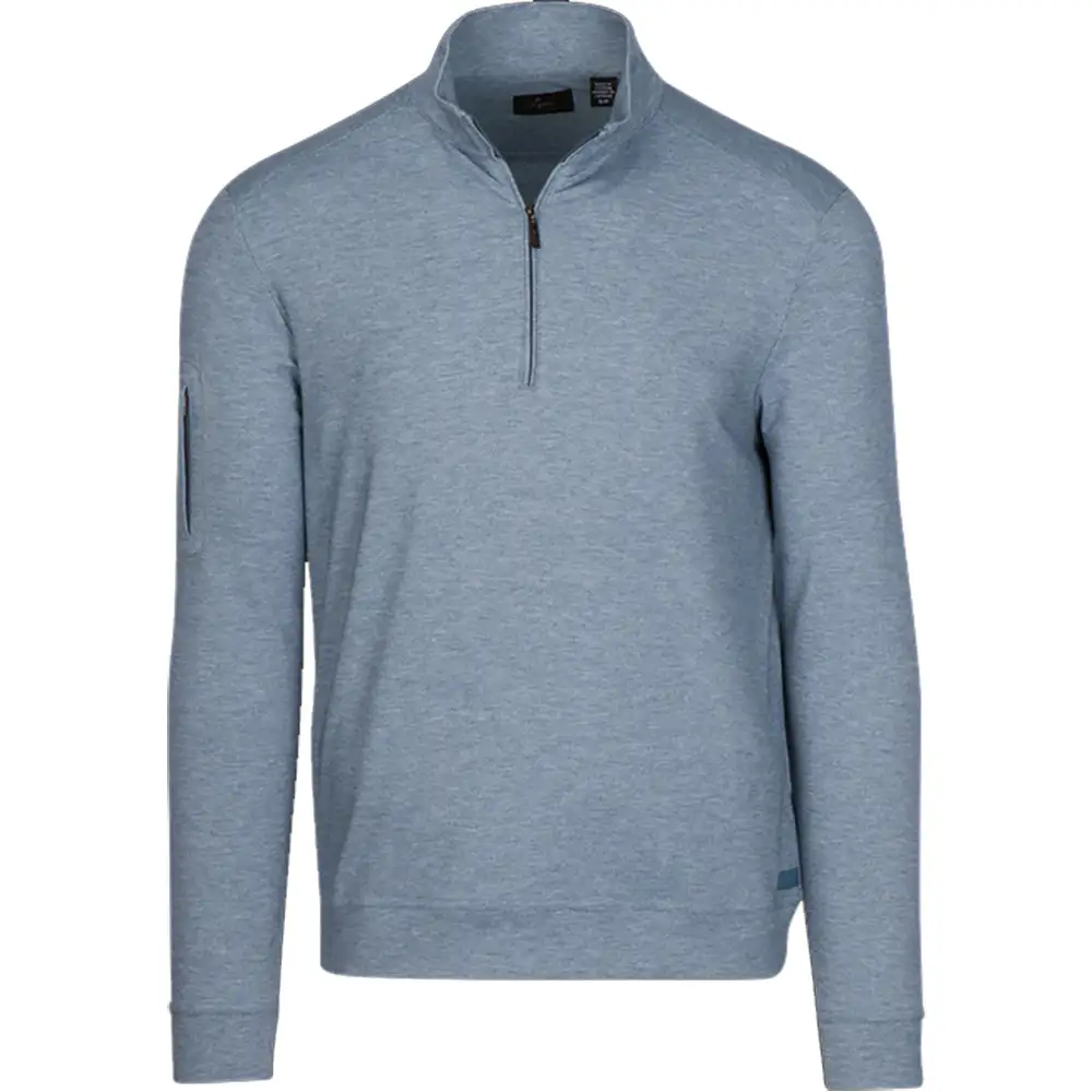 The Greg Norman Surge Long Sleeve Mens 1/4 Zip features a mock neck and a zip pocket on the right sleeve. Made from PLAY DRY fabric in a birdseye textured pattern, this 1/4 zip is both soft and stretchy for ultimate comfort. UPF 50+ sun protection provides an added bonus.