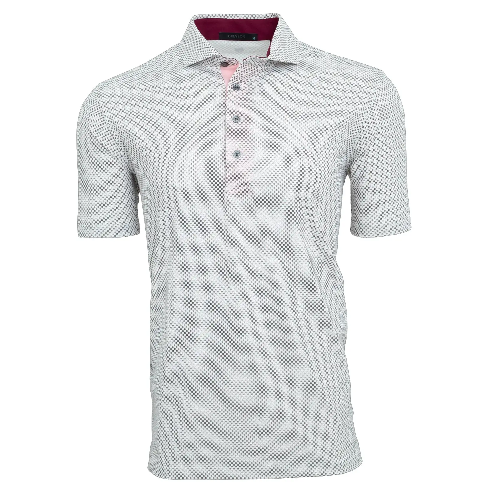 Designed with plenty of stretch and breathability comes the Greyson Dream Weaver Polo. The technical fabric is antimicrobial and moisture wicking to keep you dry and comfortable and smelling fresh during even the most heated round of golf. There is a four button placket with a classic spread collar and all-over Greyson print for a stylish look and UVA and UVB sun protection will keep you safe from the harmful UV rays of the sun.