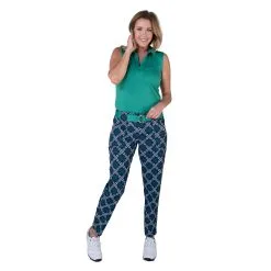 The JoFit Belted Cropped Ankle Pants will have you looking stylishly wild out on the links. These pants are made with a stretch fabric that moves with your body for comfort and the moisture wicking and quick dry aspects will keep you dry and comfortable your entire round. There are deep front pockets that are great for storinrg your glove and scorecard and the pants also come with an Emerald green belt for added style.