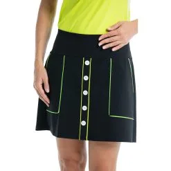 Classic styling meets a touch of sass with the Kinona Modern Moves Golf Skort. This skort features a built-in mesh short that with the 18 inch length provides ample coverage and there is a wide waistband and two front pockets that are great for storing balls, tees or scorecard. The Modern Moves is built with a quick drying Italian fabric with a four way stretch to keep you dry and comfortable throughout the round and a UPF 50 rating keeps you protected from the harmful UV rays of the sun.