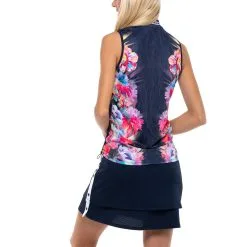 The Lucky in Love Techno Tropic Bungee Zip Sleeveless Golf Polo is designed to keep you comfortable both on and off the course. This semi-fitted polo features a zip front, psychedelic floral print, and side bungees. Quick drying and moisture-wicking fabric will keep you cool and comfortable all day long.
