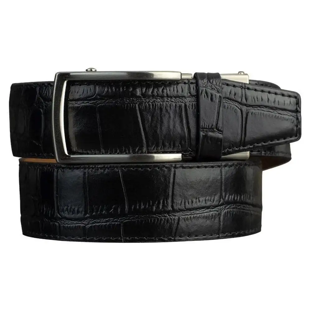 Cap your golf or dress look with the classy Nexbelt Alligator 2.0 Black Belt. This belt is made with a premium Alligator embossed black leather with a rich classic look that will be classy as both a golf belt or dress belt. The belt closes with PreciseFit Ratchet technology that gives you a comfortable and accurate fit.