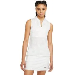 Bring new energy to the course with the Nike Breathe Floral Print Sleeveless Golf Polo. This polo is built with Nike Breathe fabric that pulls moisture from the body to keep you dry and comfortable. The V-neck design throws a modern twist to the polo and a modified racerback will cover traditional bra straps and combine that with the floral print and you will be looking stylish from the first tee to the final green.