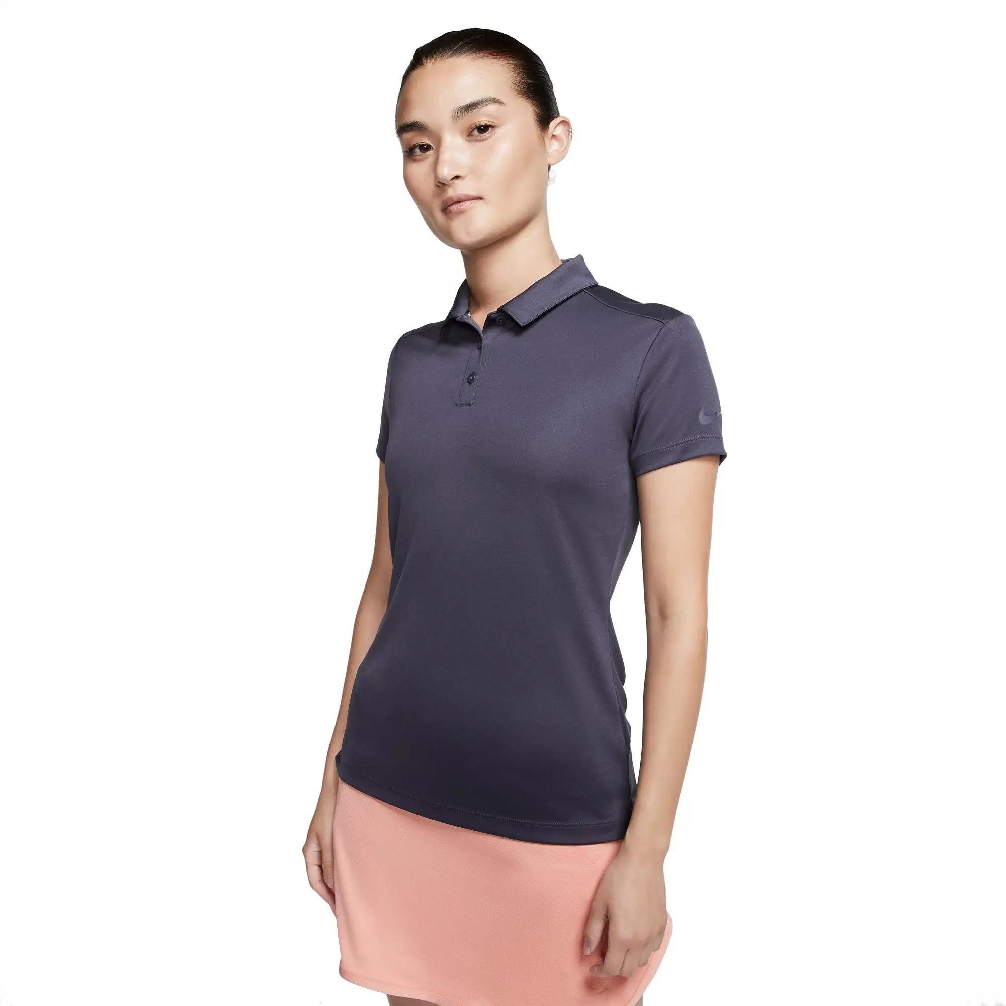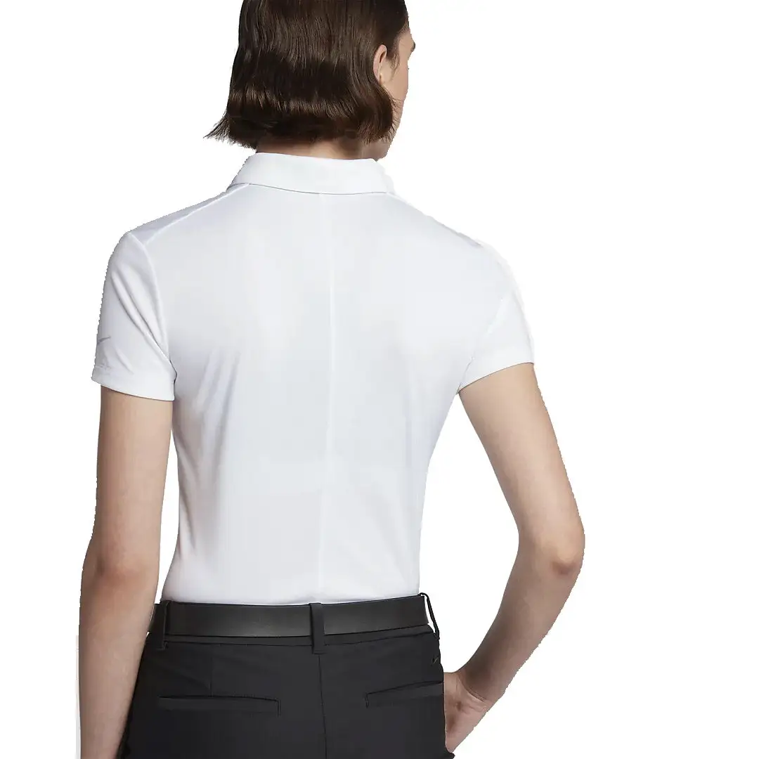 Try this Nike Dri Fit Solid Women’s Golf Polo for a classy look. Made with moisture control to keep you cool and dry all 18 holes. This polo is a regular fit with a droptail and 3 button placket for a cute design.