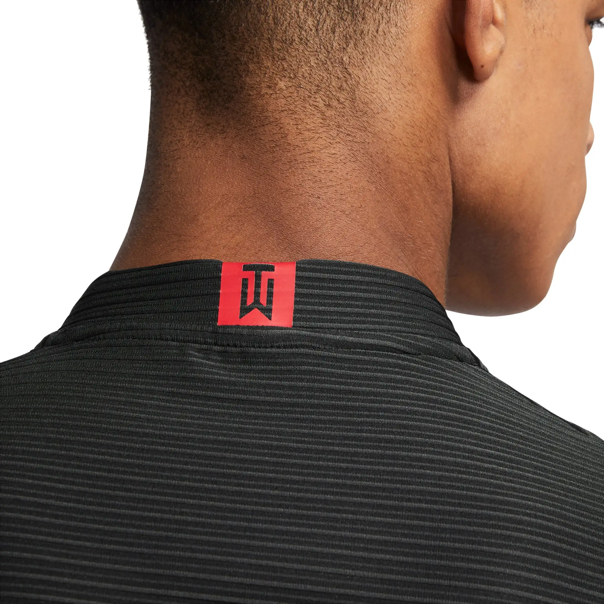 Crafted and tested by the great Eldrick Tiger Woods, the Nike Dri-FIT Tiger Woods Dry Golf Polo is built to keep you dry and comfortable out on the course. This polo is made with Nike Dri-FIT technology that pulls moisture from the body to keep you dry and comfortable and hem vents let the polo drape nicely if worn untucked or will stay tucked-in when needed. There is a hidden, snap button placket with blade collar that lies smoothly against the neck for a modern, stylish look. The shoulder seams are rolled forward to allow for freedom of movement throughout the golf swing for tons of comfort.
