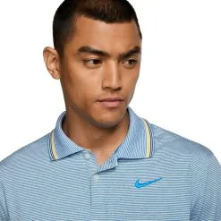 Stay dry and comfortable out on the links with the Nike Dri-FIT Vapor Golf Polo. The Vapor is built with a stretchy fabric with spandex that moves with you and the Dri-FIT technology pulls moisture away from the body to keep you dry and comfortable at all times. There are faux Pearl buttons that provide a sophisticated look that combine with the all over stripe print to have you looking stylish on the links.