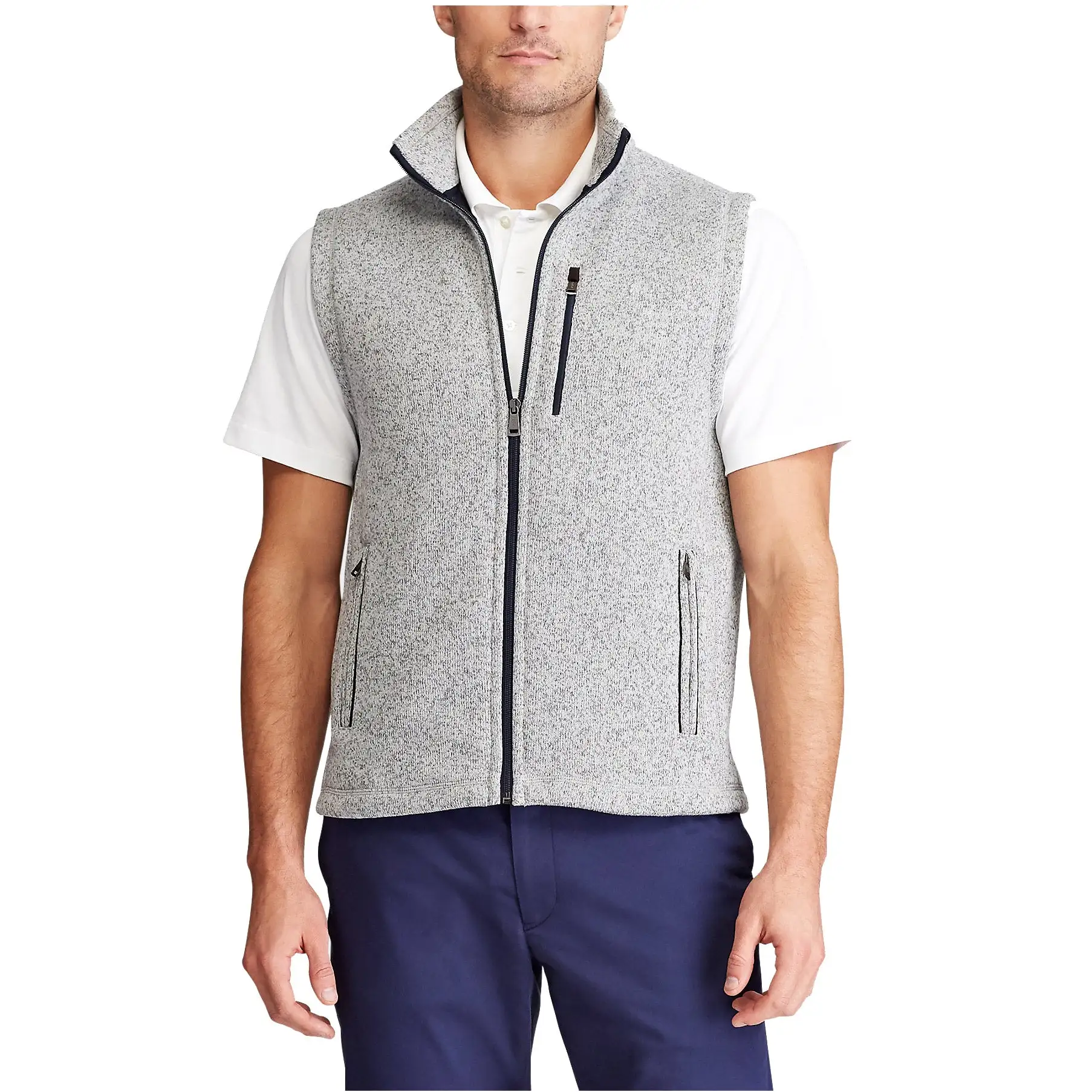 Get the look of a sweater with the cozy comfort of a fleece in the Polo Golf Madison Avenue Sweater Golf Fleece Vest. The mock neck provides golfers with added coverage and the full zip placket allows for easy on and off wear. There is a zip chest pocket and two zip waist pockets on the front that are great for storing small accessories.