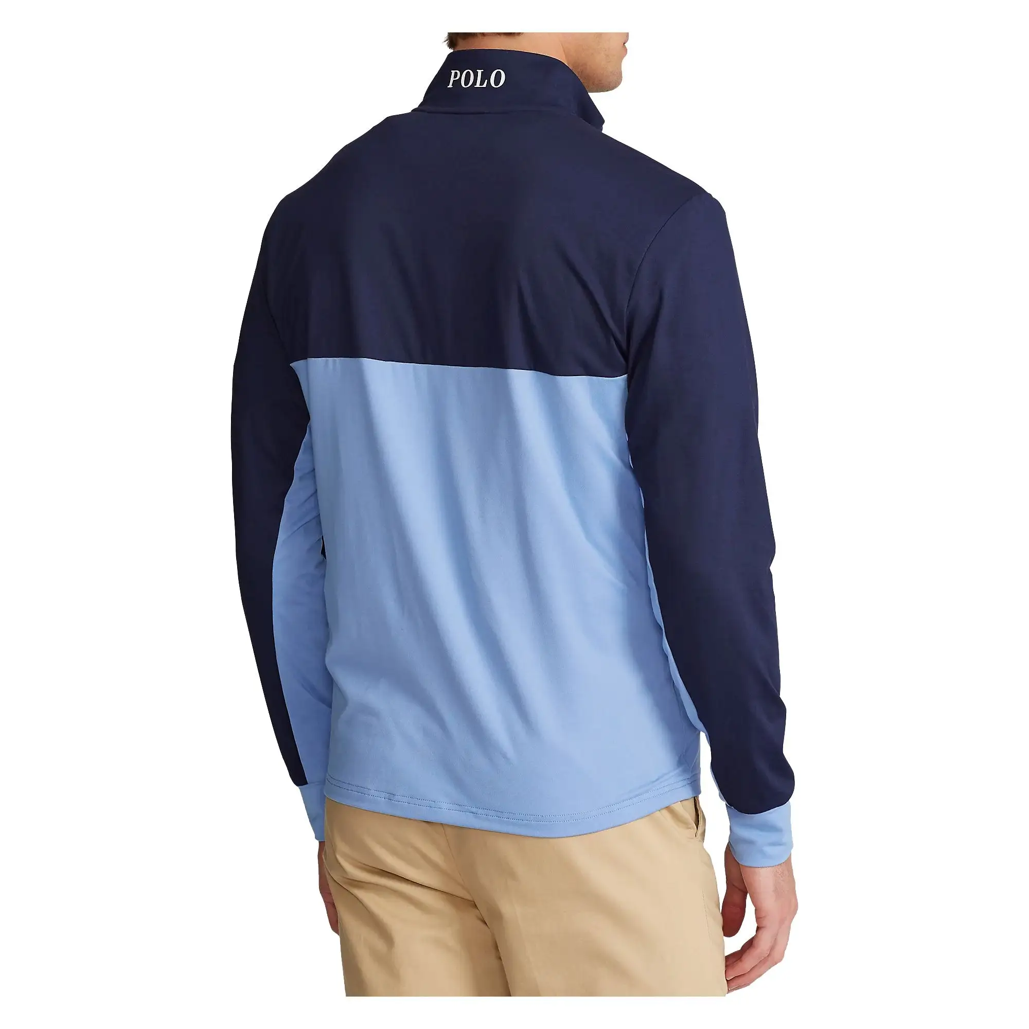 The Polo Stretch Peached Jersey Golf 1/2 Zip Pullover is designed to keep you comfortable and warm on those cooler days out on the course. It features a classic fit, 1/2 zip, wind guard, reflective interior tape, flap at the top to prevent chafing, and Polo printed at the back of the neck. It also features moisture-wicking material to keep you dry all day long.