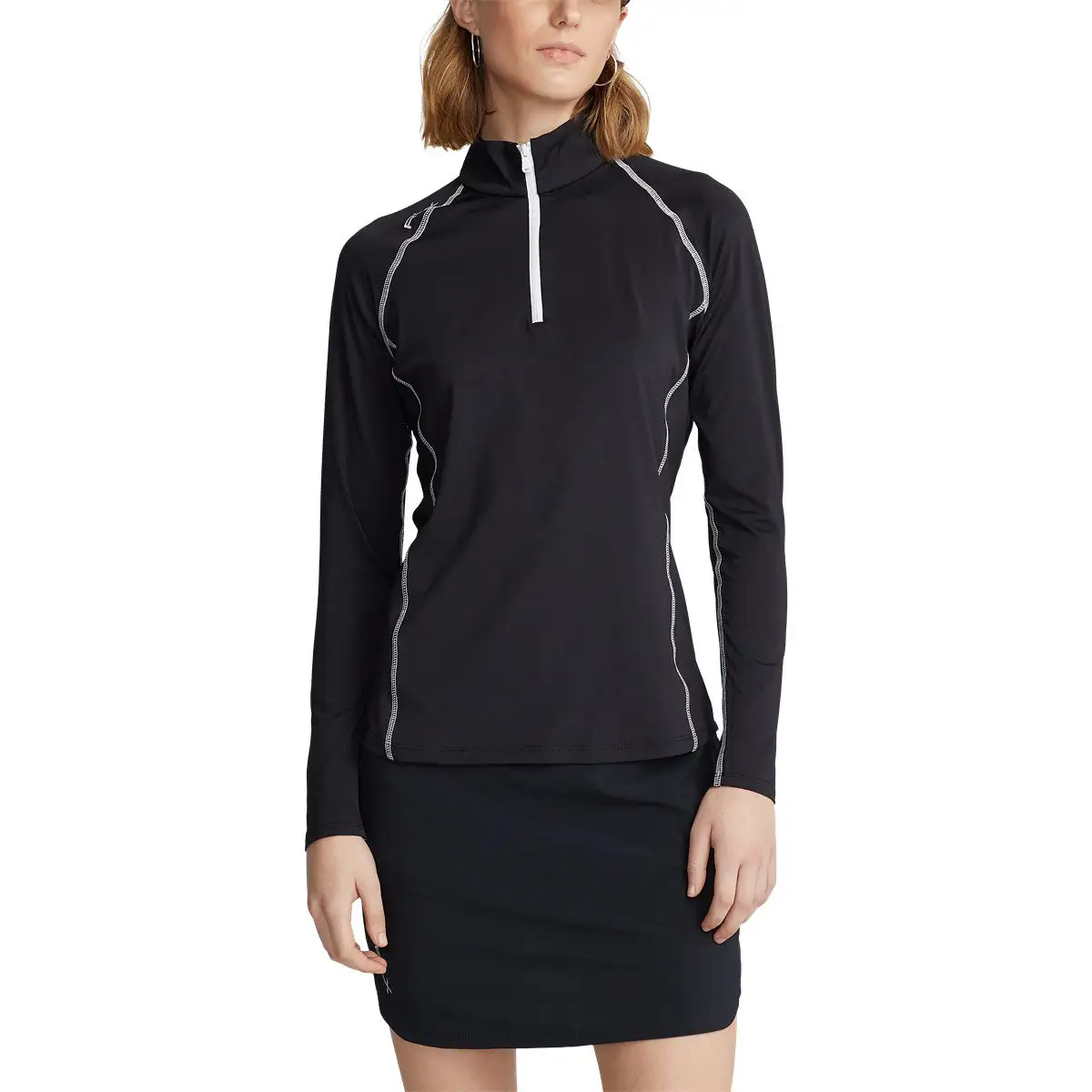 The RLX Ralph Lauren Airflow 1/4 Zip makes it easy for women to layer up on those brisk course mornings. This top is crafted from a lightweight, breathable jersey with a touch of stretch that allows you to swing with ease. It features a mock neck, quarter zip placket so you can easily adjust your coverage as the weather changes, and a back yoke zip pocket so you can store your small golf essentials.