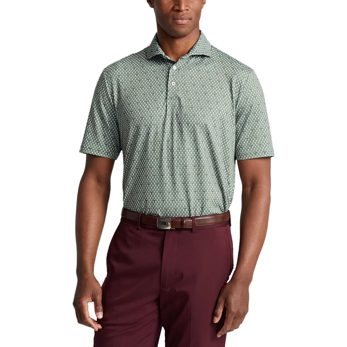 Look like a winner with the RLX Lightweight Airflow Mens Golf Polo. Built with an airflow jersey fabric, this polo is designed to wick away moisture and offer added breathability, so you stay dry and comfortable even on hot days. It features a three button placket, a cut and sewn collar for more structure and stability, and a ball and tee pattern for some fun styling.