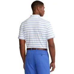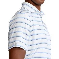 Built with a high quality lightweight knit comes the RLX Ralph Lauren Lightweight Wide Multi Stripe Golf Polo. This polo comes in a classic fit and is built with a moisture wicking fabric that pulls sweat from the body to keep golfers dry and comfortable throughout the round. The wide striped pattern combines with a cut and sewn collar interfacing that produces more structure and stability to provide golfers with a stylish look that will have them looking good on and off the golf course.