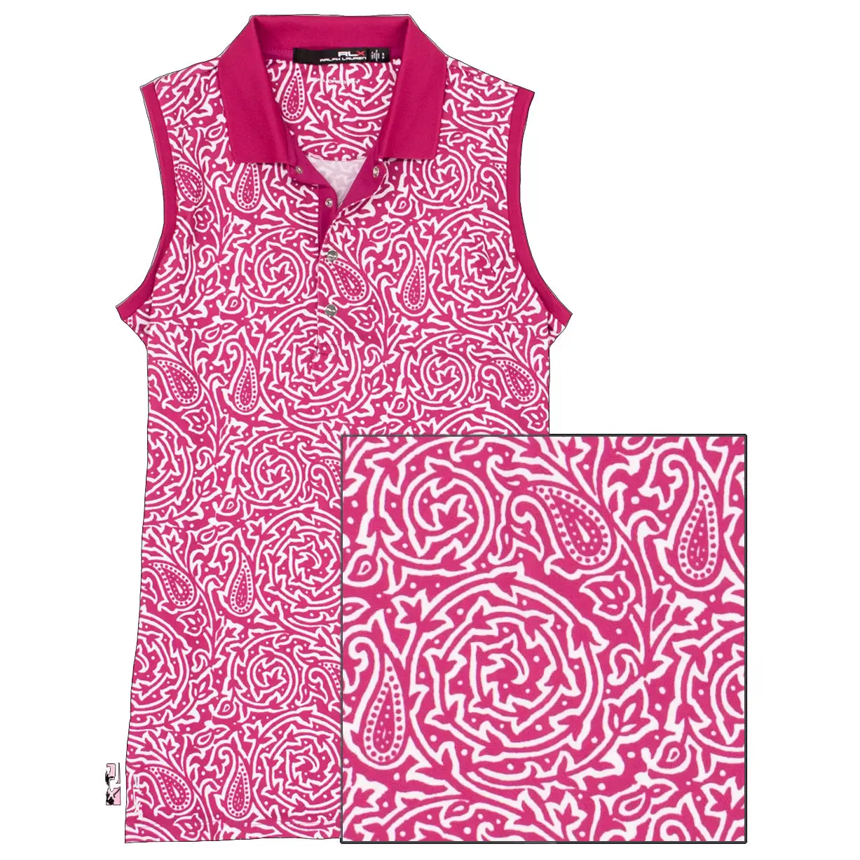 Get a must have staple for your wardrobe with the RLX Printed Airflow Jersey Sleeveless Golf Polo. This polo is built with moisture wicking and breathable properties that will pull sweat from the body to keep you dry and comfortable throughout your entire round. A UPF 50 rating will keep you protected from the harmful UV rays of the sun and the print along with contrasting collar and armholes will have you looking good from the first tee to the final green.