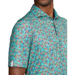 Get lightweight comfort with a unique styling in the RLX Ralph Lauren Printed Lightweight Airflow Jersey Golf Polo. This polo is lightweight and moisture wicking that will pull sweat from the body to keep you dry and comfortable throughout the entire round. The collar is interfacing which provides structure and stability to keep the collar looking good. The classic fit of this polo combines with a floral pattern that will have you looking good both on and off the golf course.