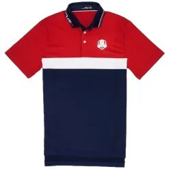 Look like the 2020 US Ryder Cup team and show off your American pride with the RLX Ryder Cup Air Tech Pique Golf Polo. This color-blocked polo is built with a lightweight stretch jersey that moves with you for 18 holes of comfort and its also moisture wicking to keep you dry and comfortable throughout the round.