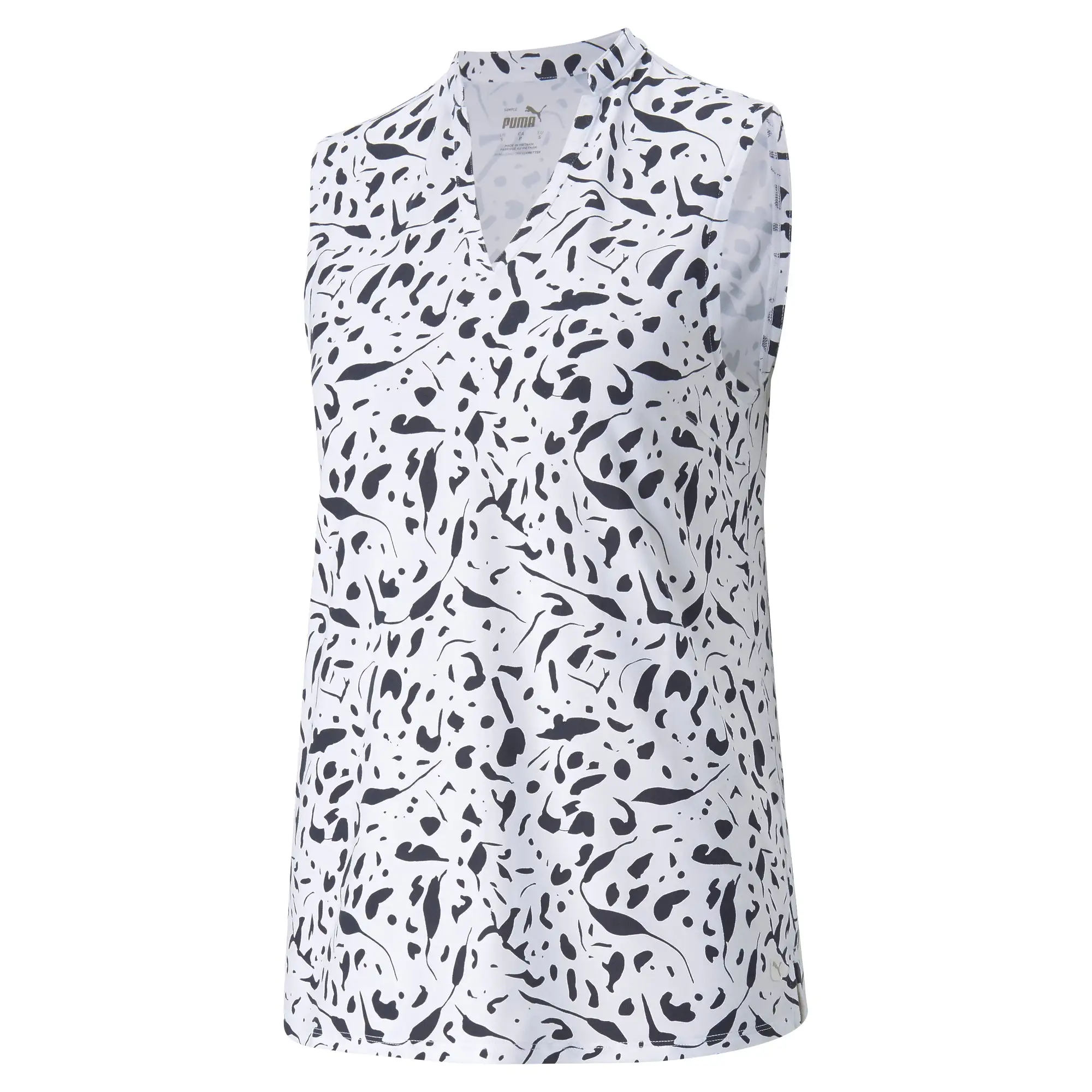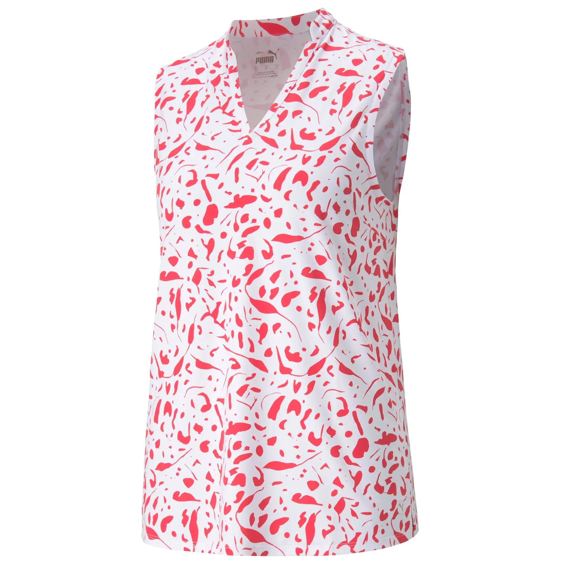 Show off your fun, fashionable side out on the course with the Puma CLOUDSPUN Chelsea Sleeveless Golf Polo. This polo is built with CLOUDSPUN that is super comfortable and also moisture wicking to keep you dry as well throughout your round. The four-way stretch adds to the comfort and a UV 50+ UPF rating keeps you protected from the harmful UV rays of the sun. The all-over abstract pattern of the Chelsea lets you show off your style on and off the course.