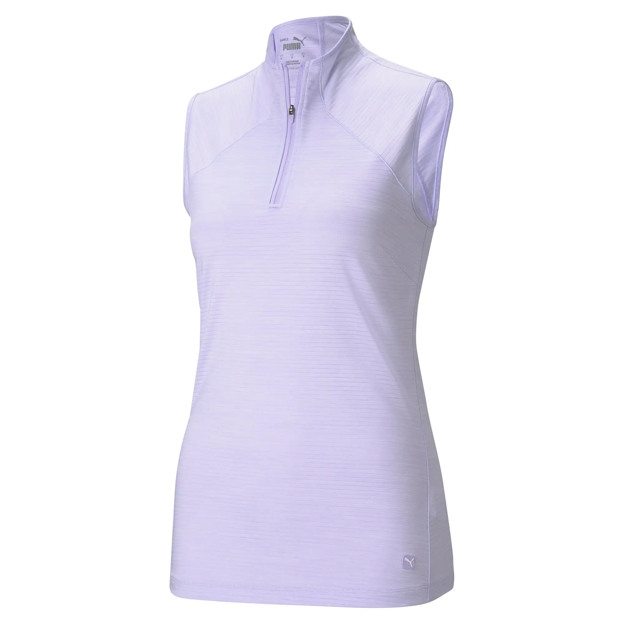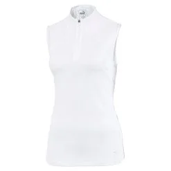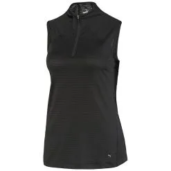The Puma Daily Mockneck Sleeveless Womens Polo will soon be your new favorite. This lightweight, moisture-wicking polo boasts a heathered fabric with textured stripes and a very flattering mock neck with a zip placket.