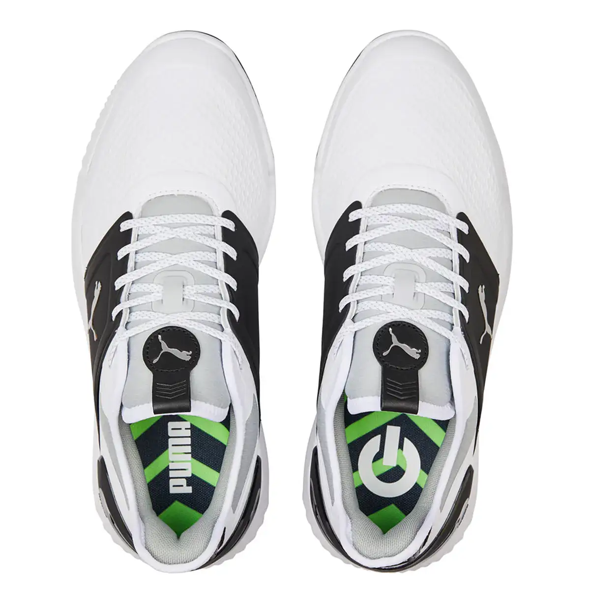 Puma delivers grip and stability with the Ignite Elevate Spikeless Mens Golf Shoes. Built for performance, the Ignite Elevate incorporated PWRCAGE and PWRFRAME technology for a super strong, lightweight and supportive base throughout your swing. IGNITE Foam midsole enhances your energy return and response through your steps, while the EXOShell mesh upper keeps your feet dry and cool during even the hottest of days. Even though the Ignite Elevates Golf Shoes are spikeless, you will still experience traction unlike any other.