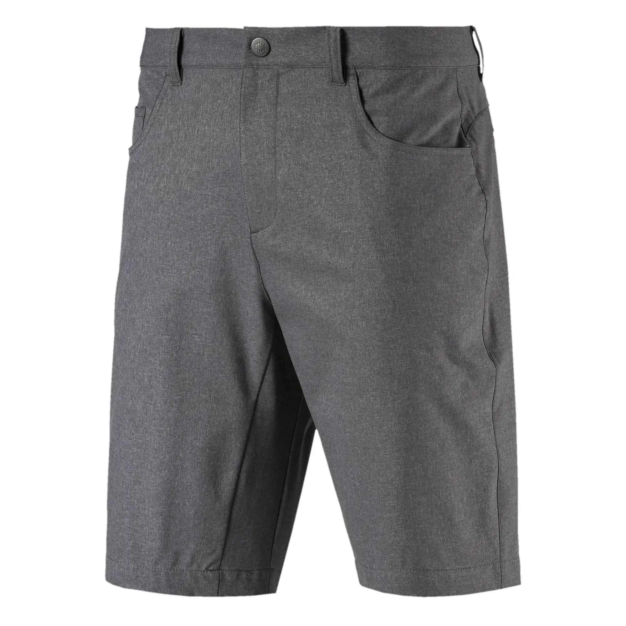 Stay dry and comfortable out on the course with the Puma Jackpot Five Pocket Design Golf Shorts. These shorts are made with dryCELL that pulls moisture away from the body to keep you dry and comfortable. These shorts also feature PWRSTRETCh that is a high stretch elastic waistband and silicone gripper that keeps you highly comfortable and also keep your shirt tucked in through all swings. A five pocket design gives you plenty of storage space for tees, balls, scorecard, glove or any small items you may need.