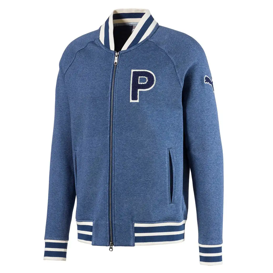 Inspired by a traditional letterman’s jacket, but with modern vibes, PUMA’s Varsity Fleece, full-zip jacket is designed with a fleece-brushed fabric, and features a chenille, oversized P logo and cat. The Jacket features two side pockets along with a unique, contrast stripped, ribbed collar, hem and cuffs. This is the perfect jacket to add some cool, old-school style to your on or off course wardrobe.