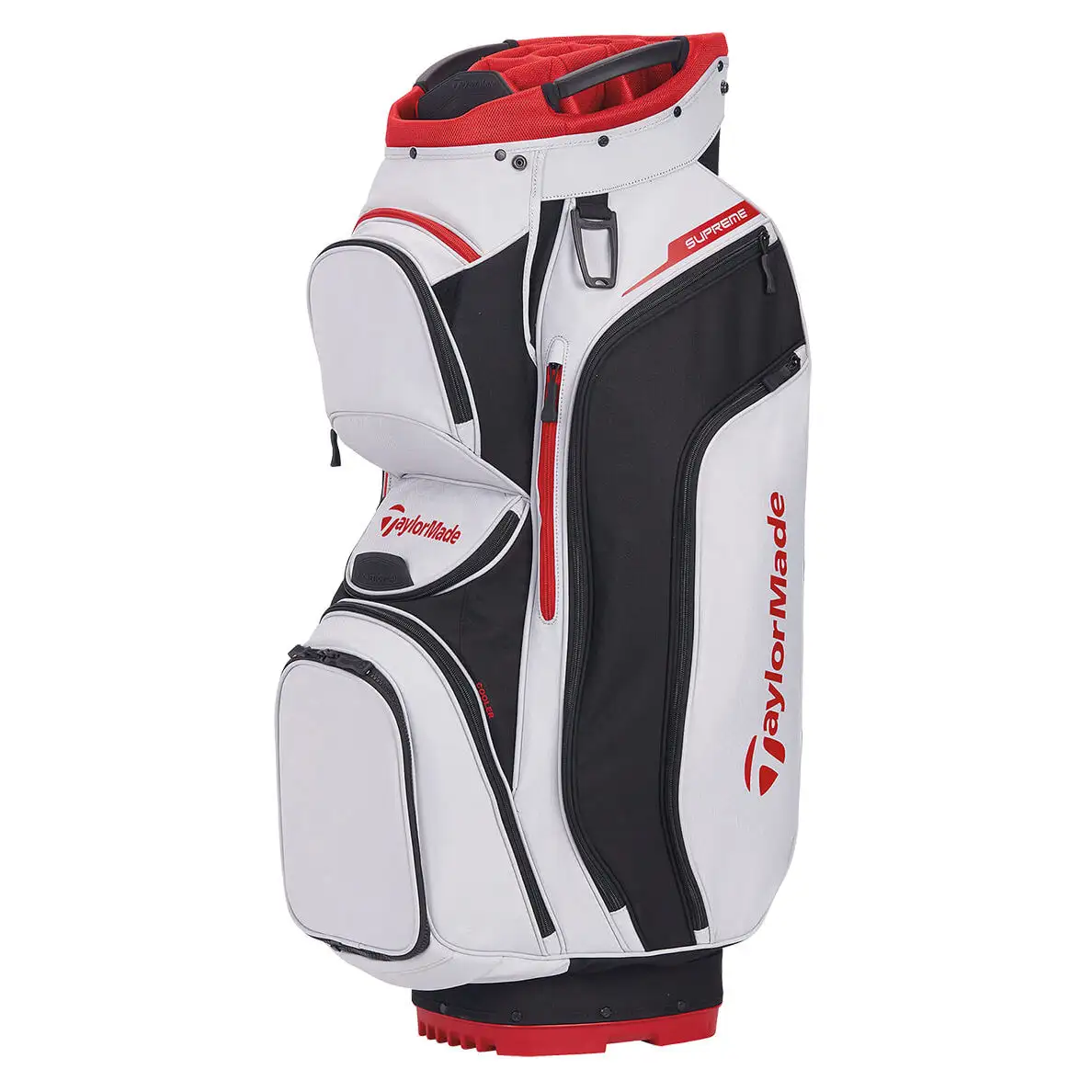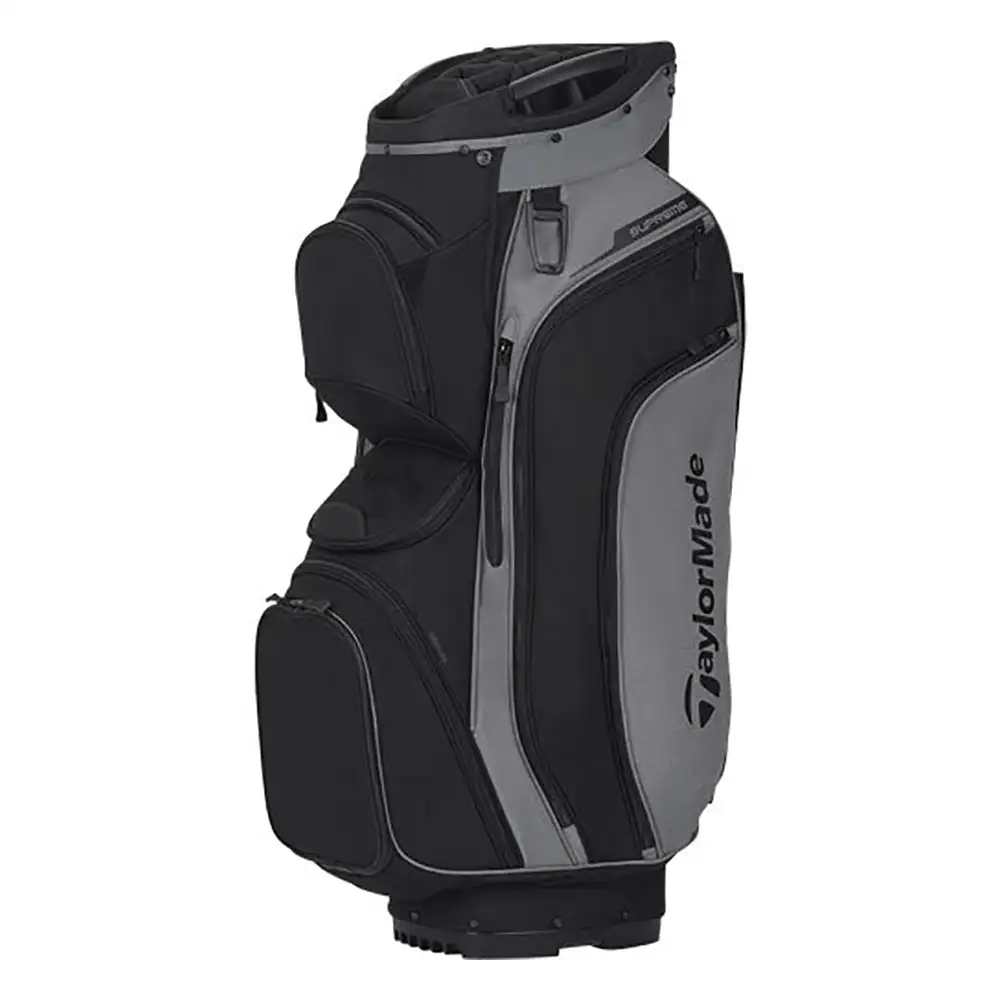 Designed to provide golfers with everything they need for convenience out on the course comes the TaylorMade Supreme Cart Bag. There are ten pockets that are perfect for storing whatever you need, including a large insulated cooler pockets that lets you keep your favorite beverage cool while out on the course. A tarpaulin reinforced strap pass through channel and cart compatible base work together to make sure your bag stays on the cart.