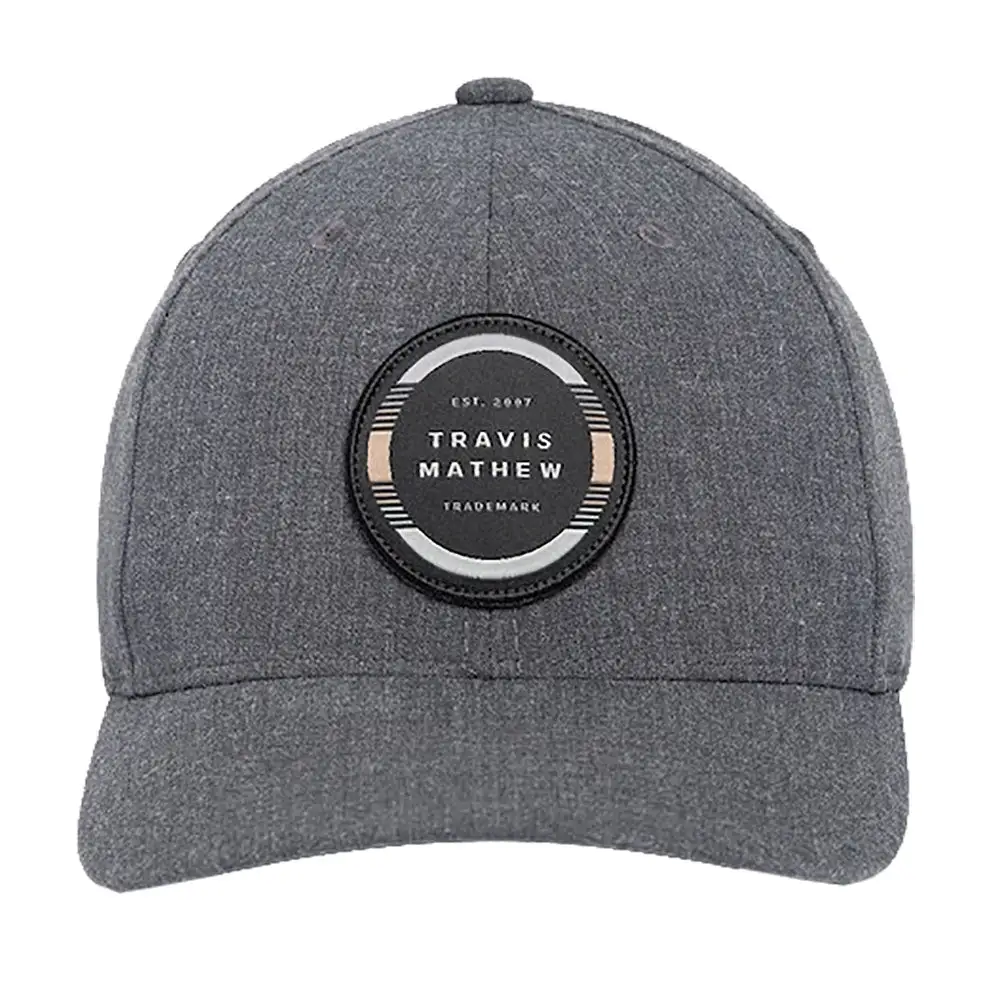 Complete your wardrobe with the TravisMathew Free Roll Mens Golf Hat. This hat is made with an adjustable snapback so you always get just the right fit. It features a logo-driven circular patch created from multi-colored stripes and a stretch sweatband that helps prevent sweat from dripping down your face.